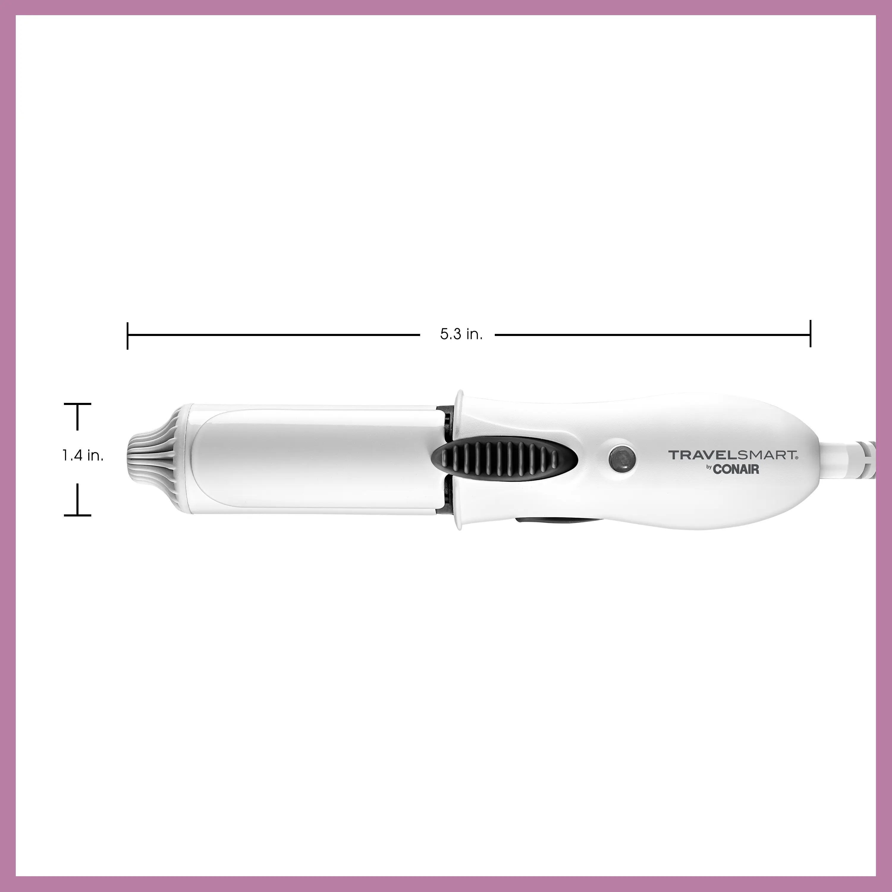 This Conair Travel Smart Mini Ceramic curling iron is a true travel-size, designed for portability and fast styling. Lightweight and compact, it's ideal for touch-ups, short hair, bangs, and layered styles. It fits in carry-ons, purses, and travel bags. Not a full-size curling iron.