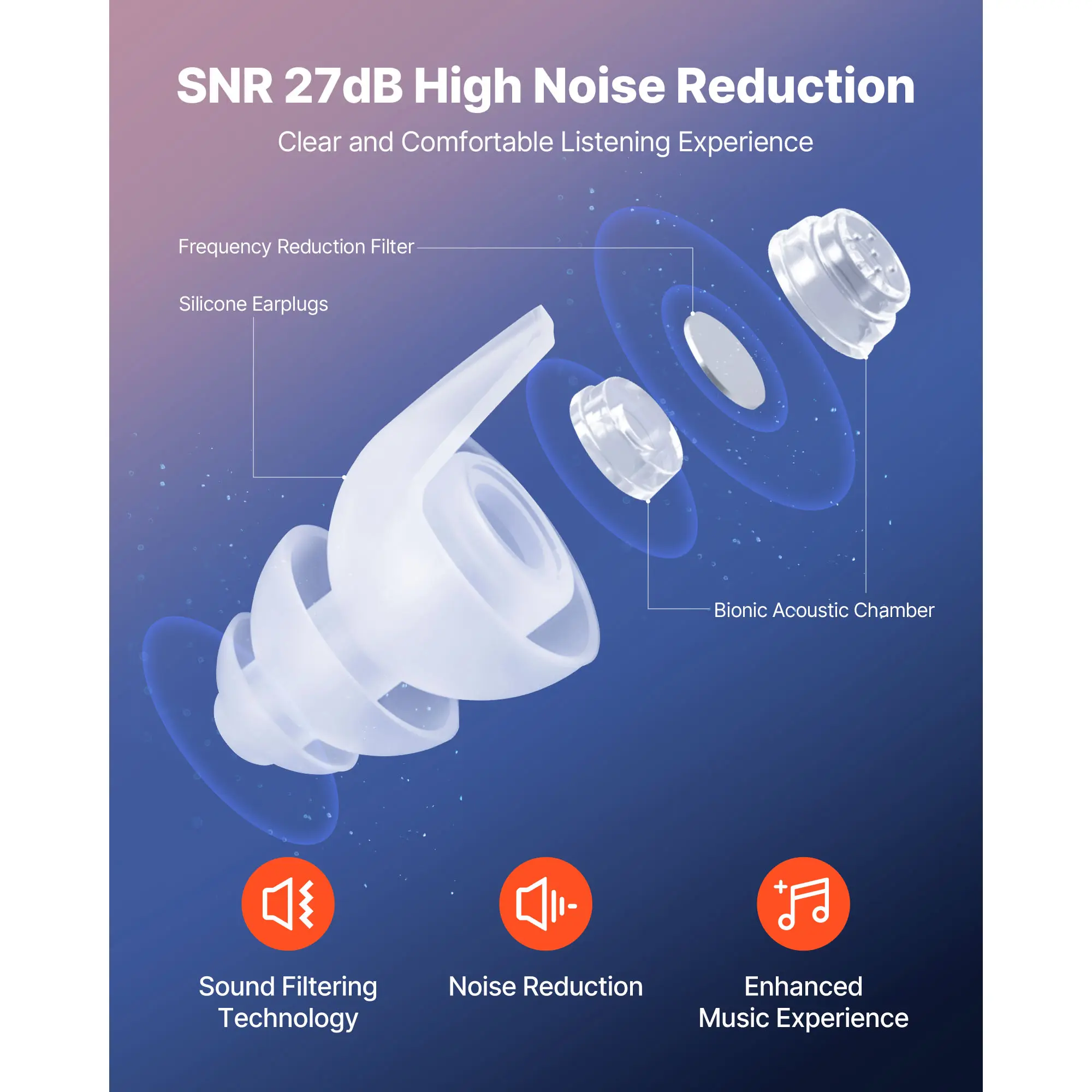 • High-Fidelity Earplugs: These earplugs offer an SNR of 27dB for effective noise reduction while ensuring clear sound quality. You can enjoy music and conversations at concerts, festivals, and sports events while protecting your hearing.