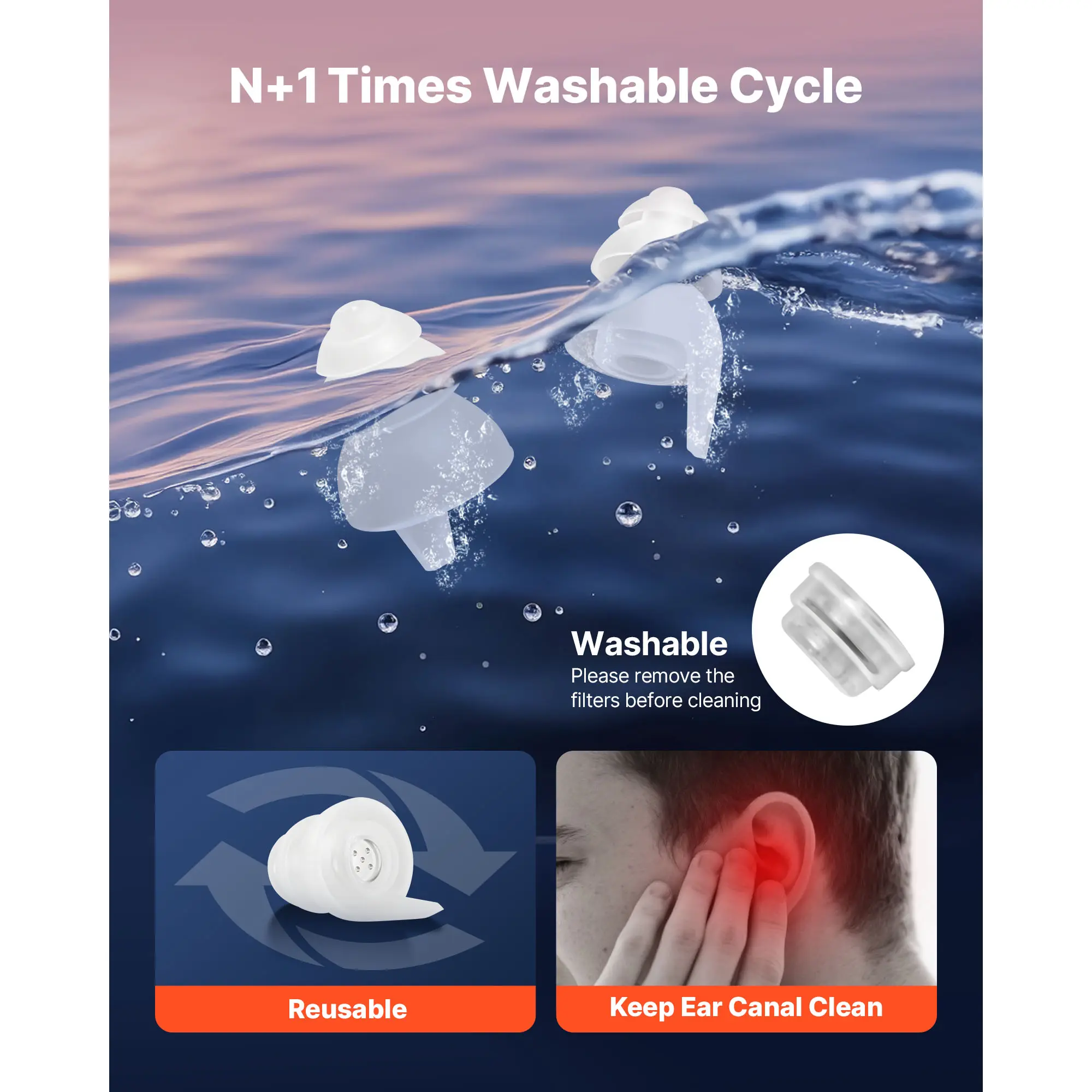 • Washable and Reusable: Made of silicone, these concert earplugs are washable and reusable, keeping them clean and hygienic. This reduces the risk of ear infections, offering a cleaner, healthier experience. Take out the filters before washing.