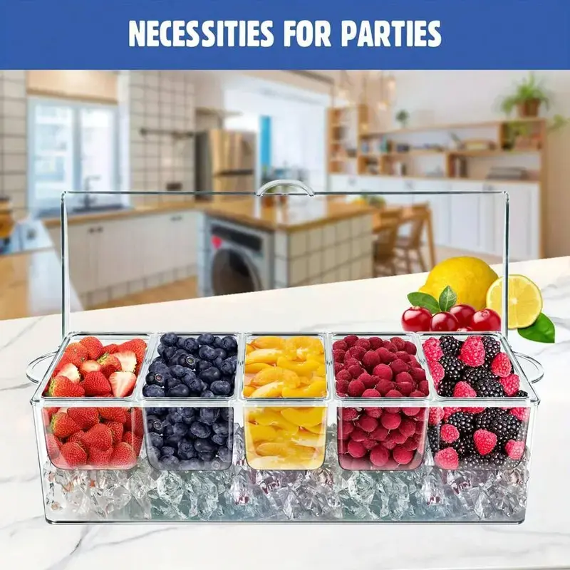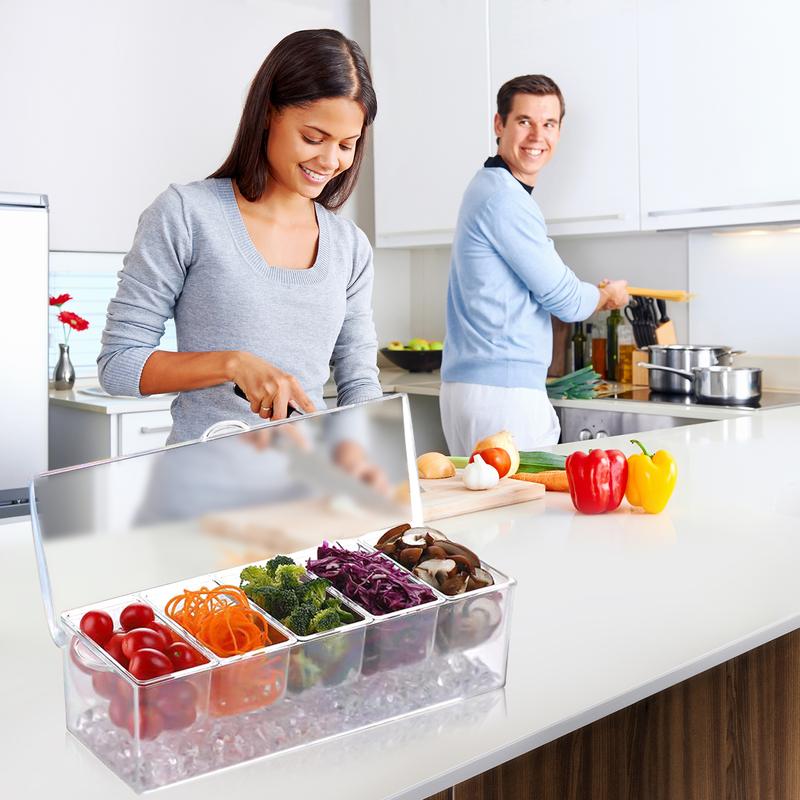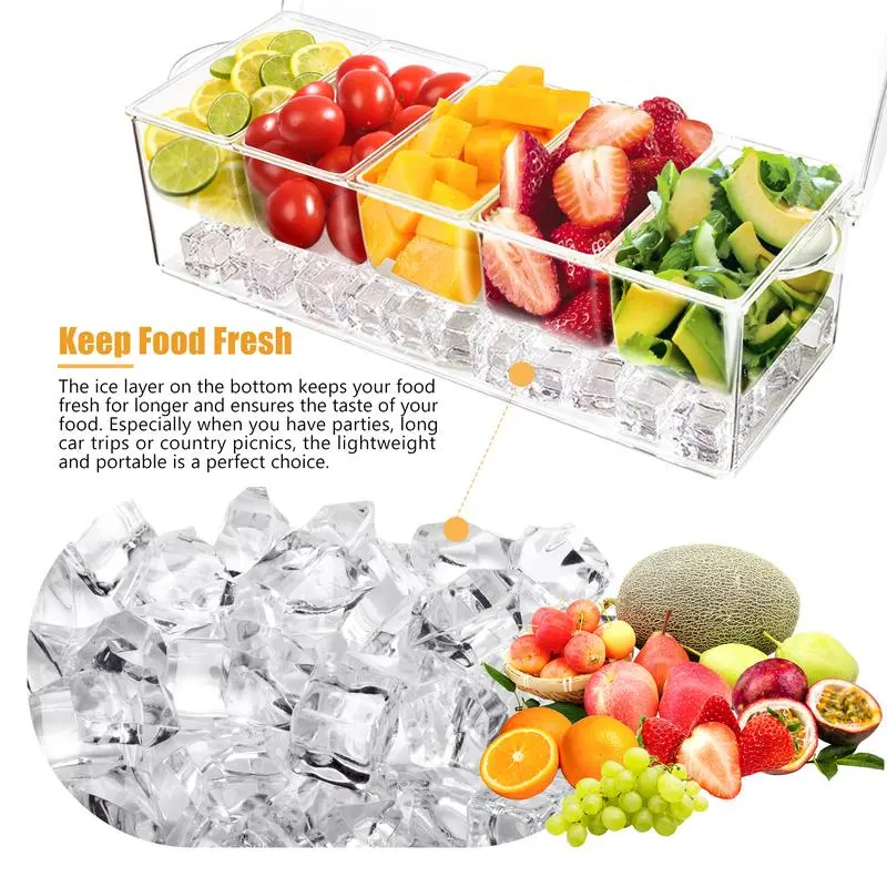 Cold Condiment Storage: Chilled Condiment Server has 5 removable compartments that allow you to store and serve a variety of condiments, fruits, salads, sauces and more while keeping them perfectly chilled.