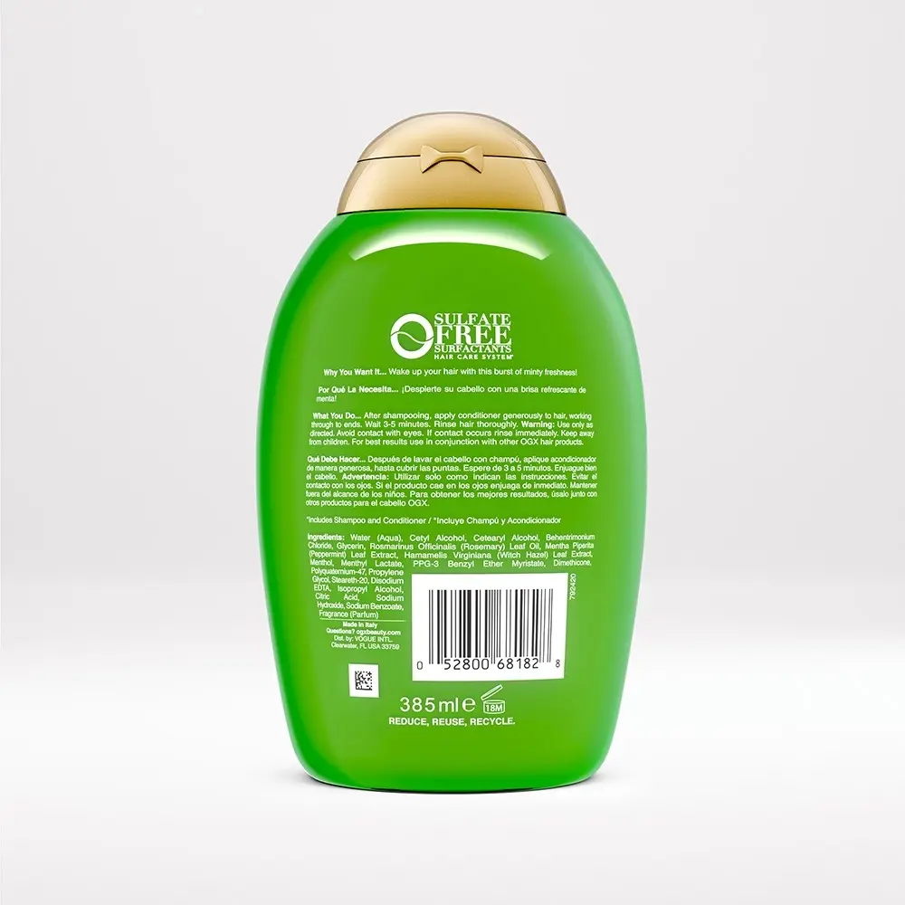 Nourish and revitalize your hair with OGX Extra Strength Refreshing Scalp + Rosemary Mint Conditioner. This conditioner from the #1 Hair Repair Brand is infused with a blend of natural ingredients designed to deeply moisturize and invigorate your scalp.