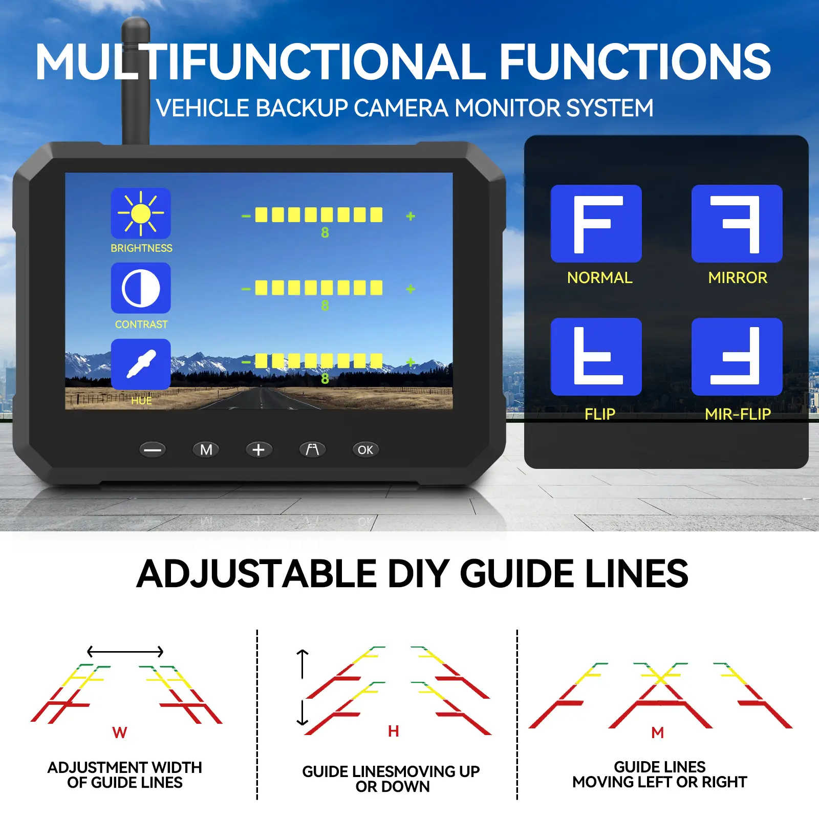 【HD 1080P 5"Monitor & Vivid Image】The back up camera for cars features a 5” HD 1080P monitor that delivers vivid, true-to-life images day or night. Capture every detail with ease, making parallel parking and backing up worry-free, even in complete darkness, thanks to our back up camera for cars wireless.The Angle of the camera can be adjusted up and down, which effectively helps the driver maintain a safe distance behind the car.