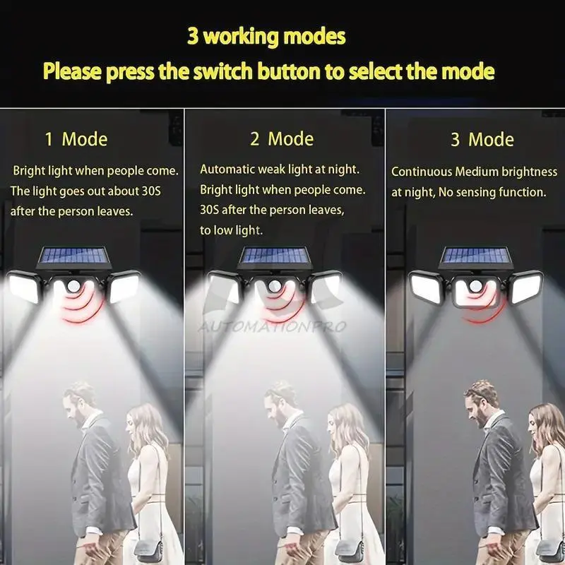 1.Sensing Mode - Strong light for 20s once movement detected, then turn off.