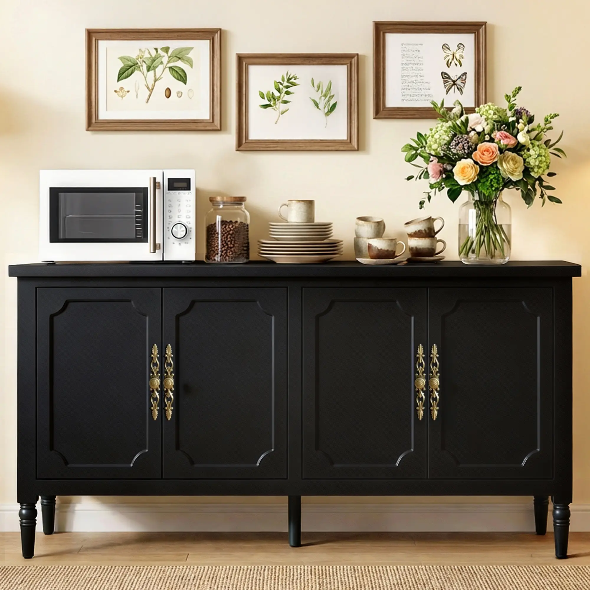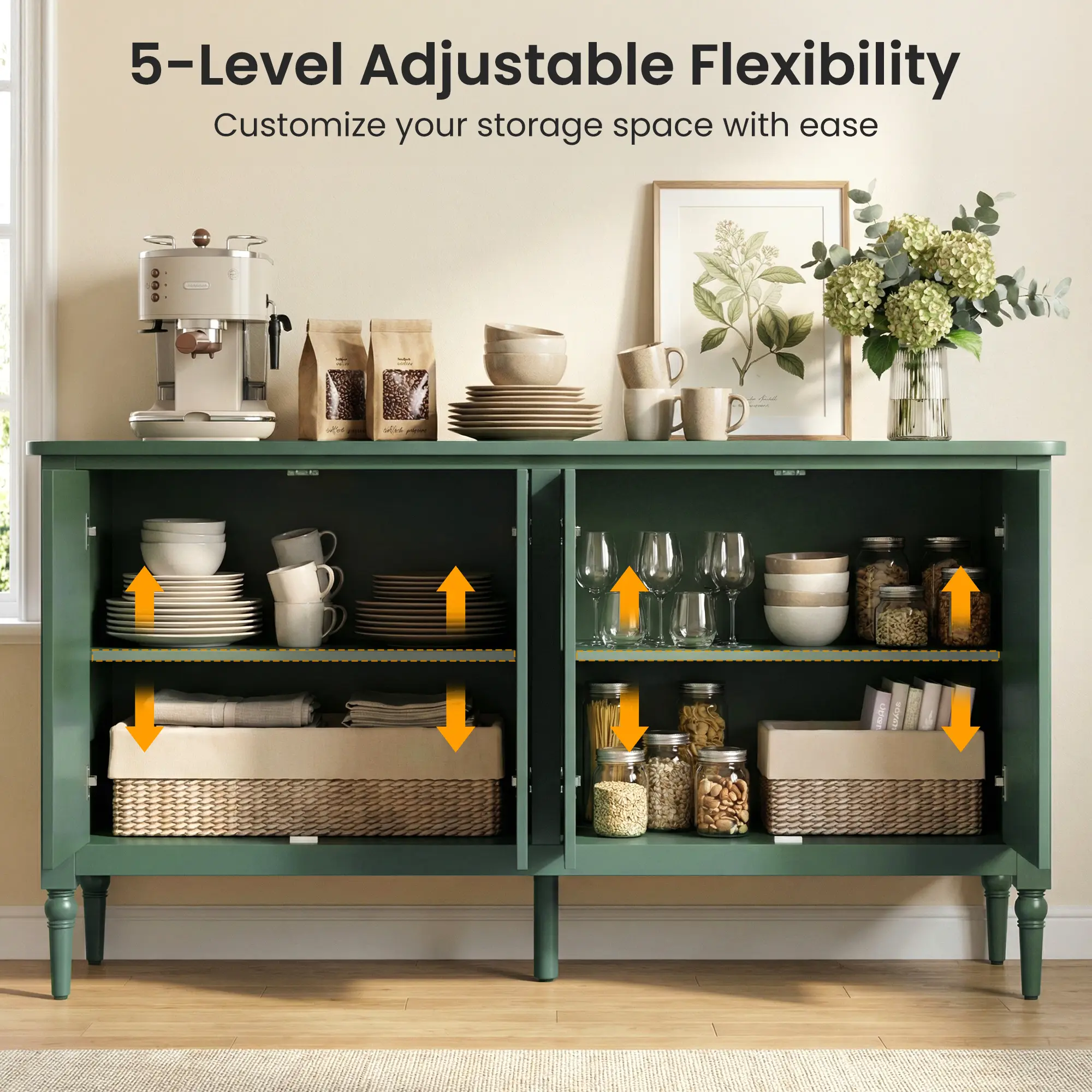 Β·γPremium Quality & Stabilityγ Constructed with premium MDF and solid wood, Specially, The exterior is finished with lead-free P2 paint, rigorously tested to ASTM standards, which not only has exquisite texture, but also ensures long-lasting durability, Water Resistance and Easy Maintenance. Notably, the cabinet's stability is reinforced by the Solid Wood cabinet legs, guaranteeing a reliable and sturdy piece of dining room furniture