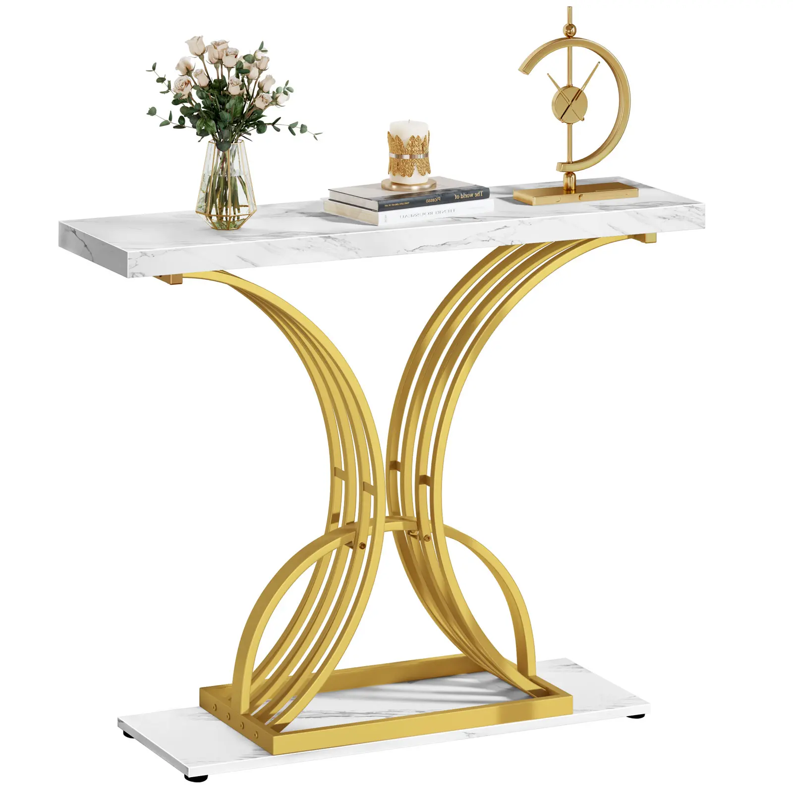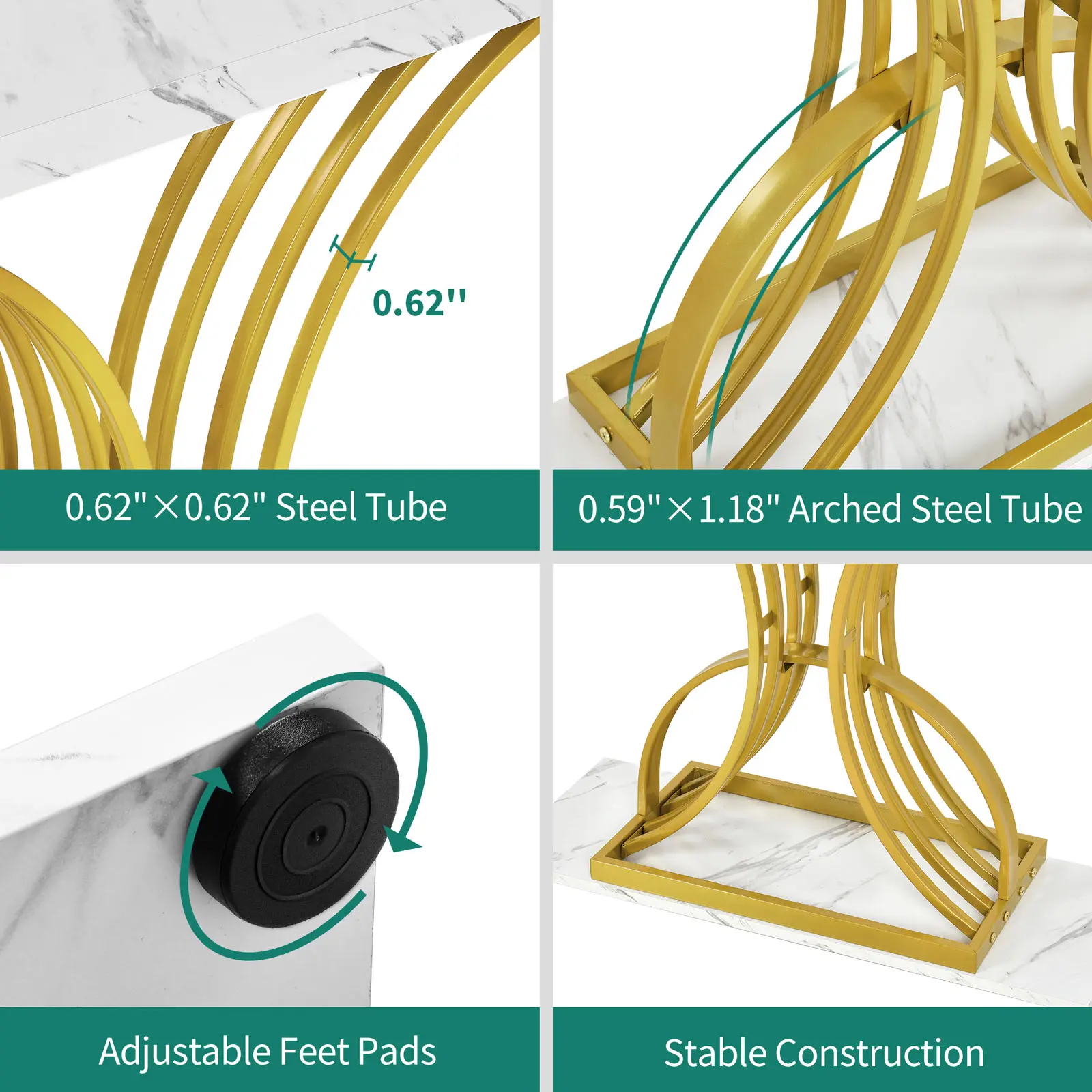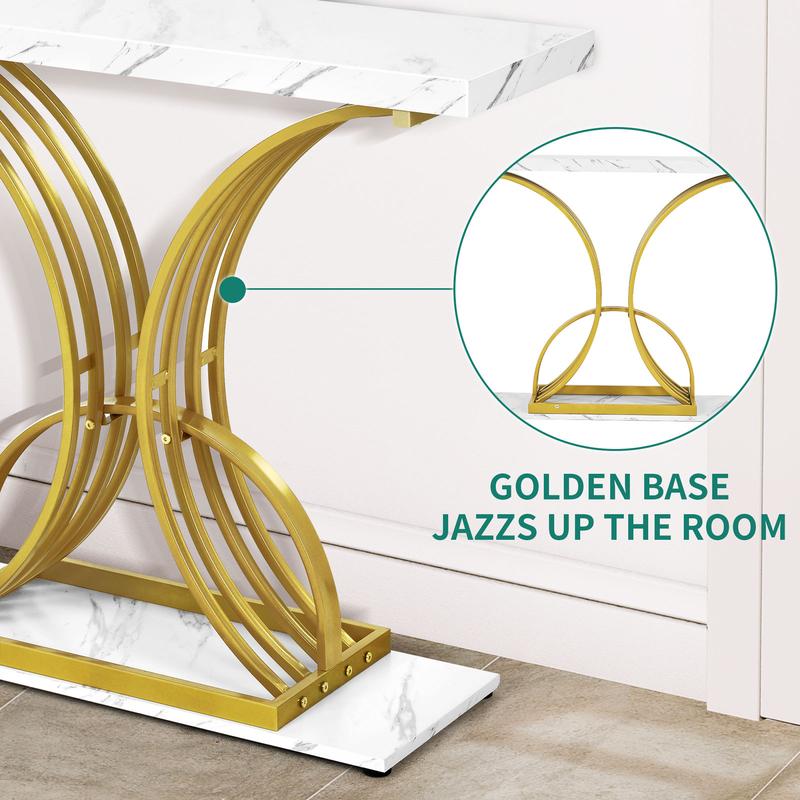 Thoughtful Features: The foot pads protect your floors from scratches, while the clean, simple layout makes this table easy to maintain. This gold console table is not just a pretty face; it's designed to stay charming and functional for years to come