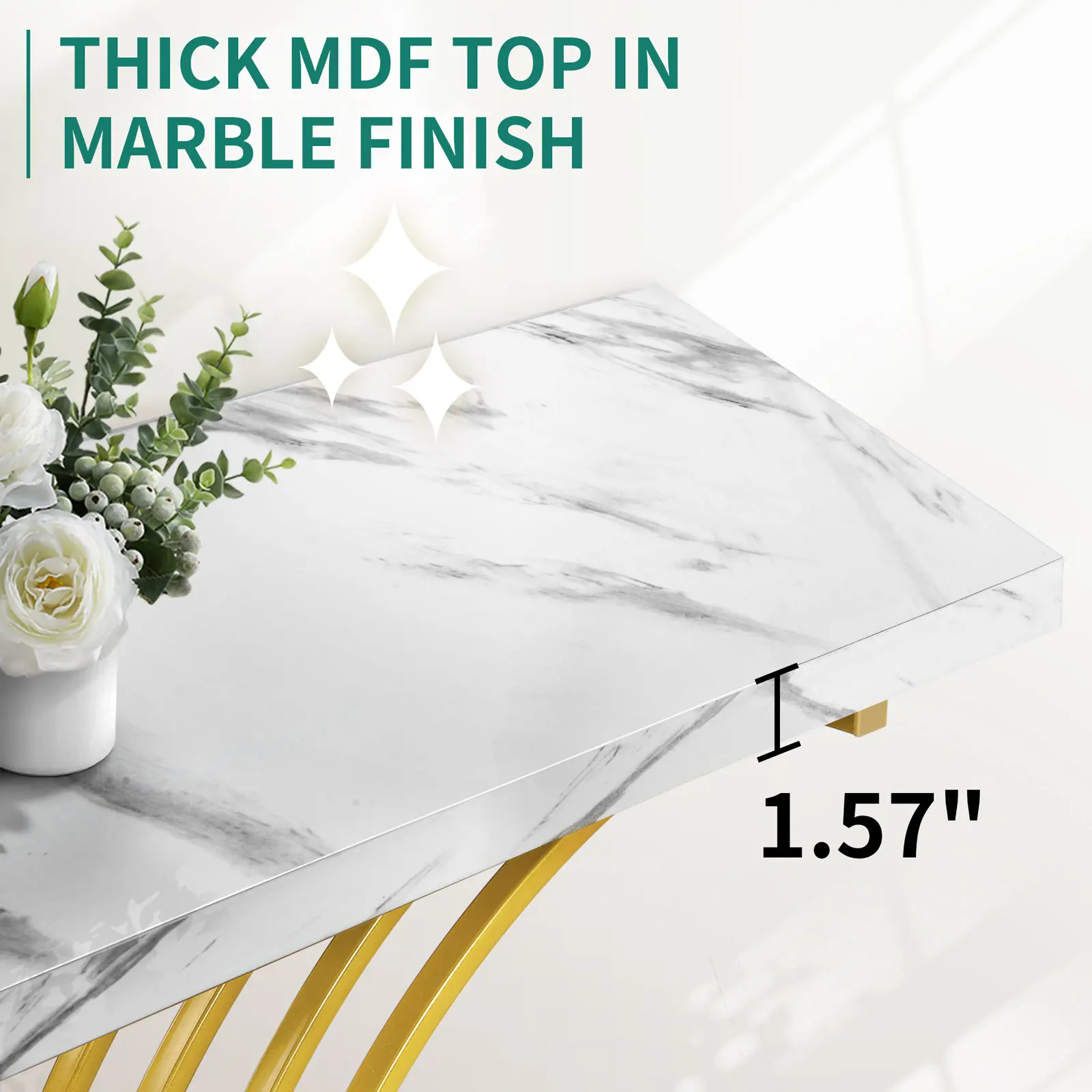 Thickened Marble Finish Tabletop: Crafted from thickened MDF board with a 1.57" thickness, this tabletop boasts a smooth marble finish. It's beautifully designed to elegantly display your favorite decors, adding a touch of sophistication to any space