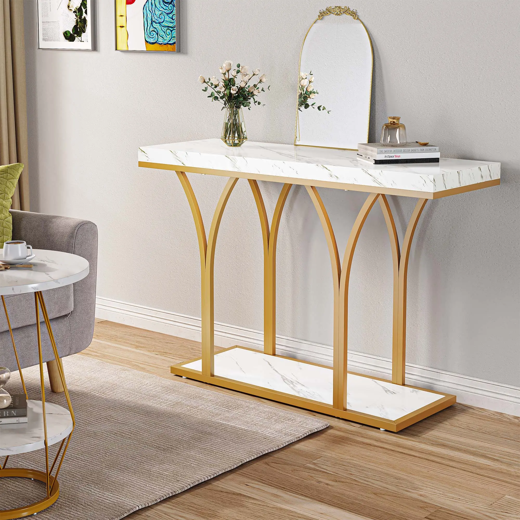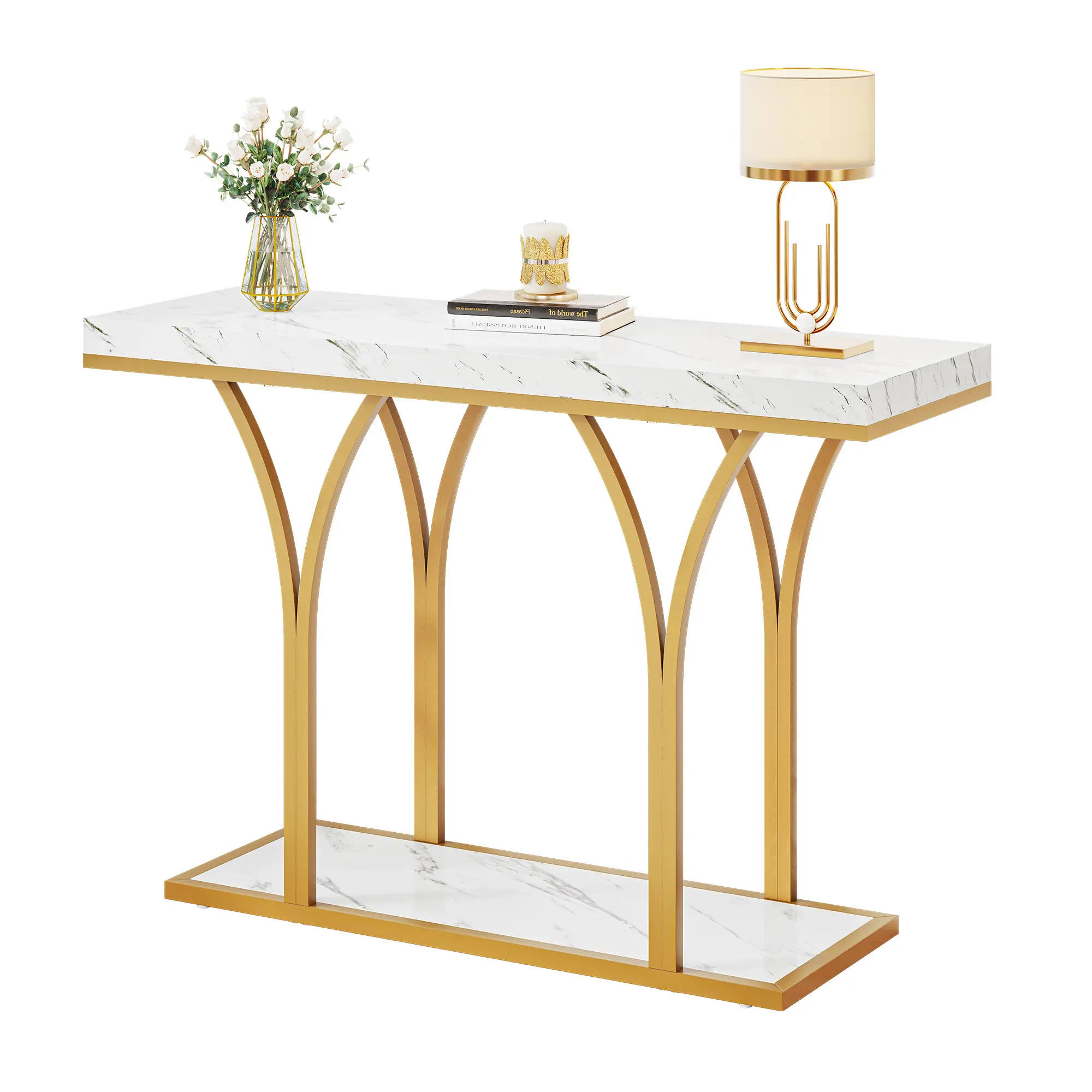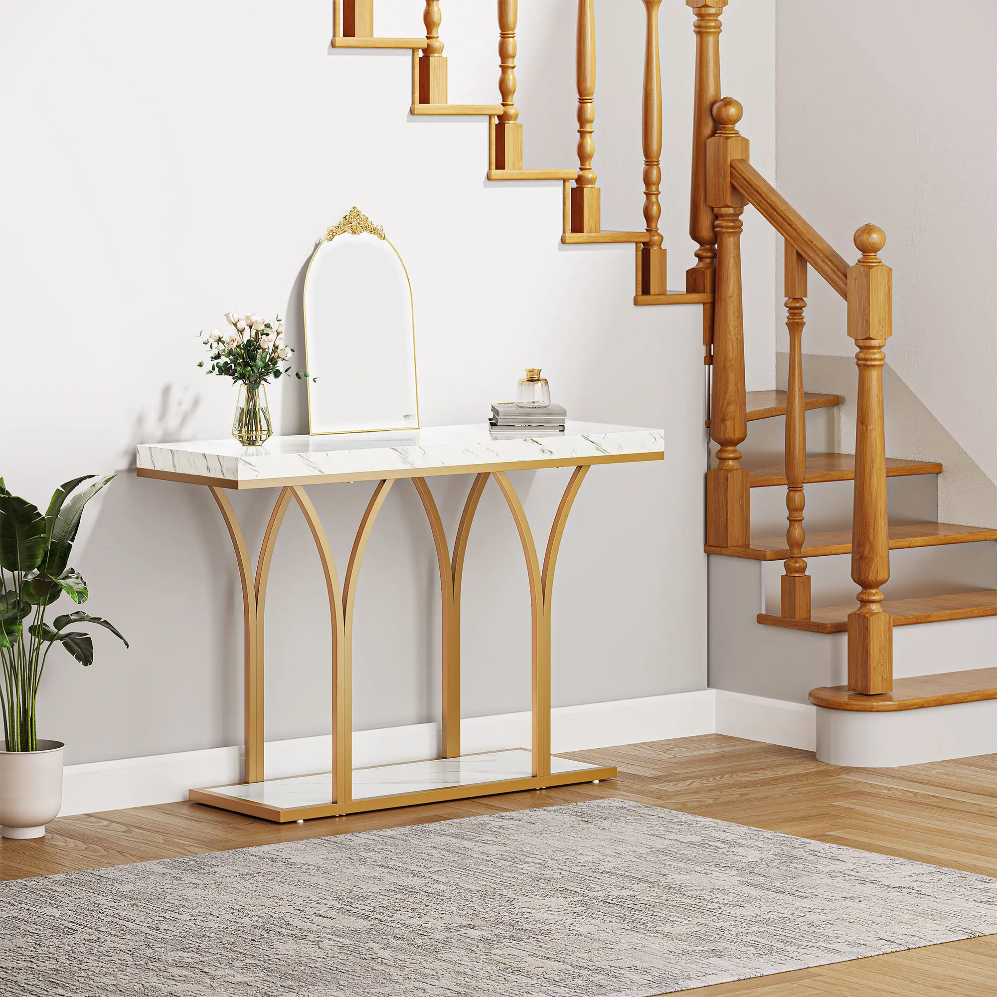 Spacious Tabletop & Easy Care: With its roomy surface, this gold marble console table handles all your storage and display needs with ease. Easily clean with a wipe, keeping it looking fabulous for years