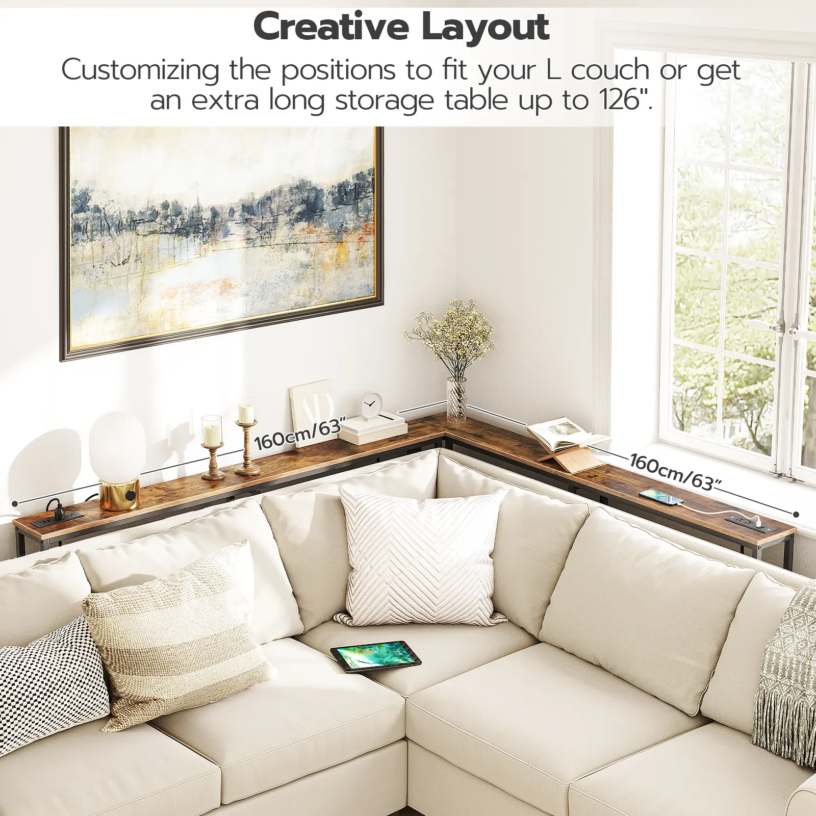 With all the functions required for charging, the sofa table is ideal for your mobile phone, laptop, desk lamps or tablets.
