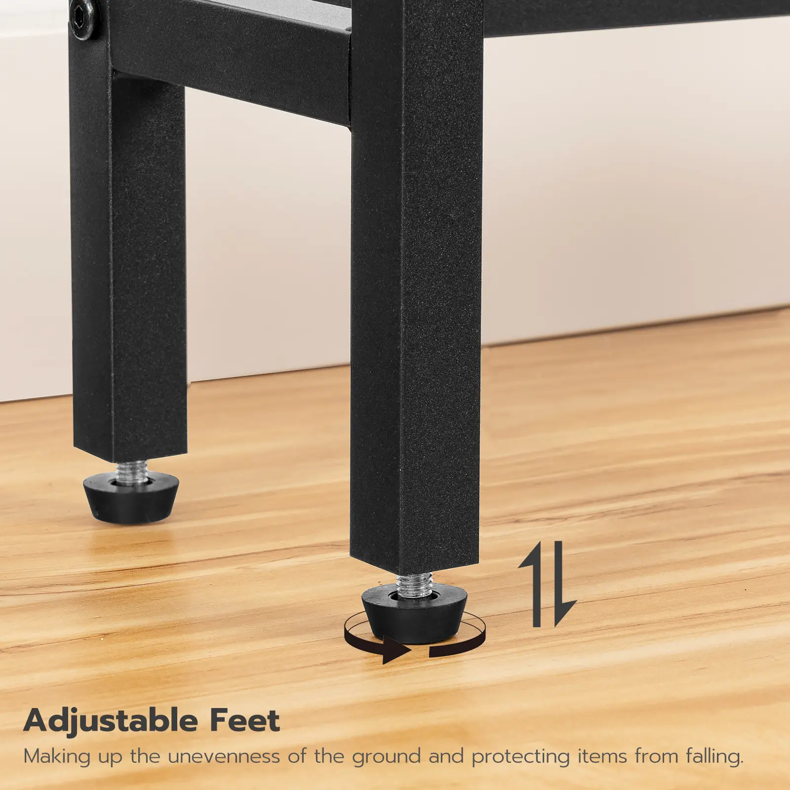 The Sturdy metal frame and 4 adjustable feet work together to provide high load-bearing capacity.