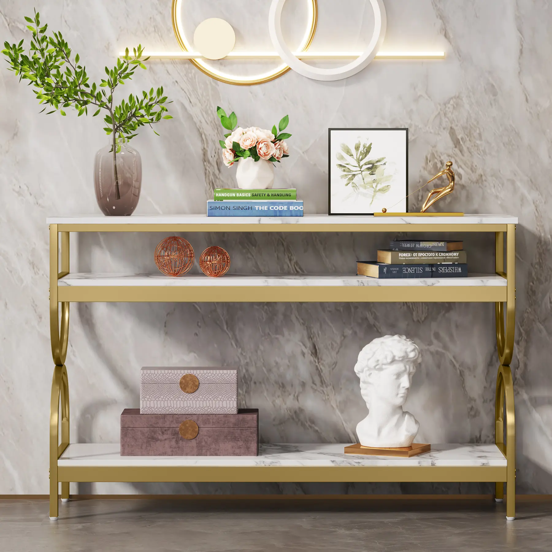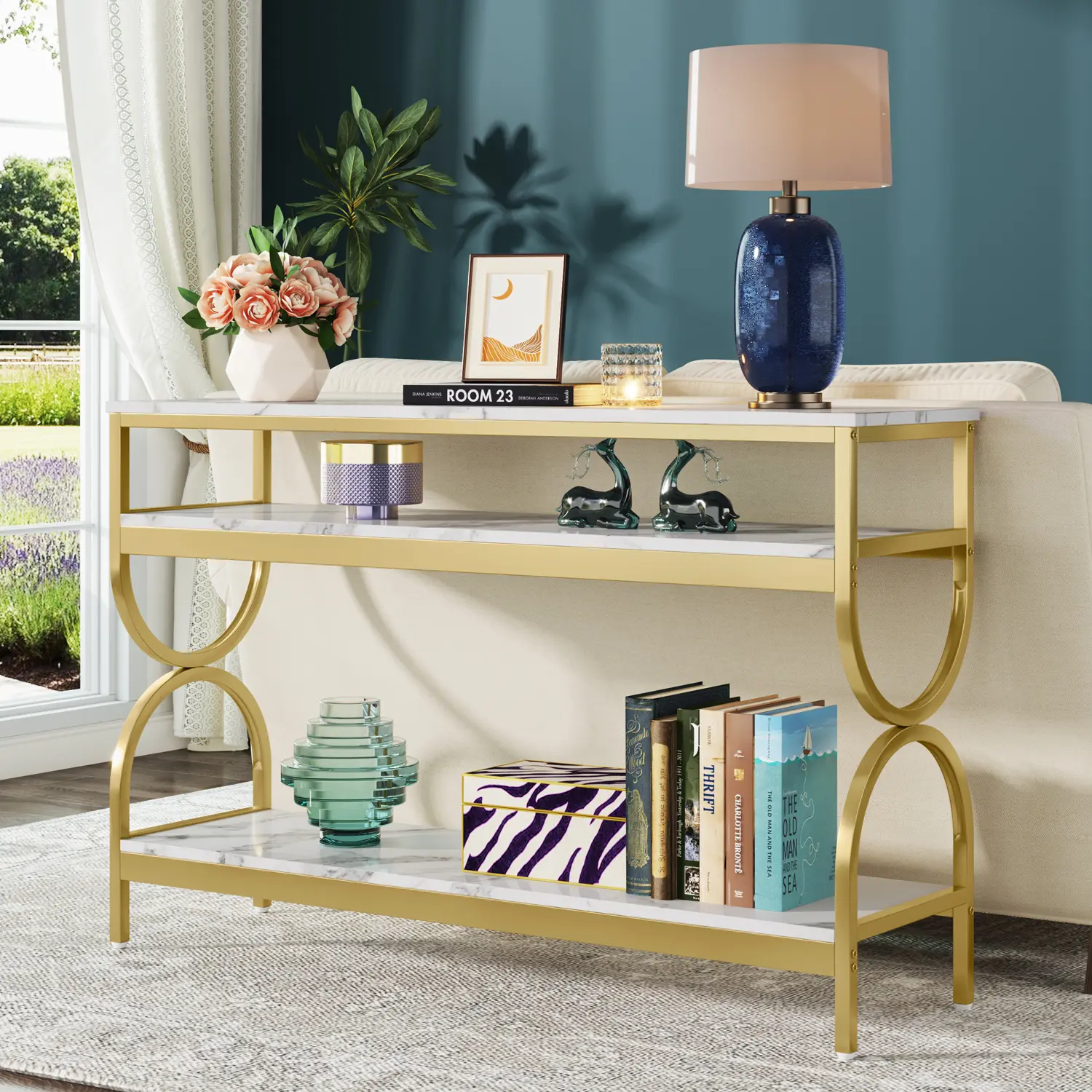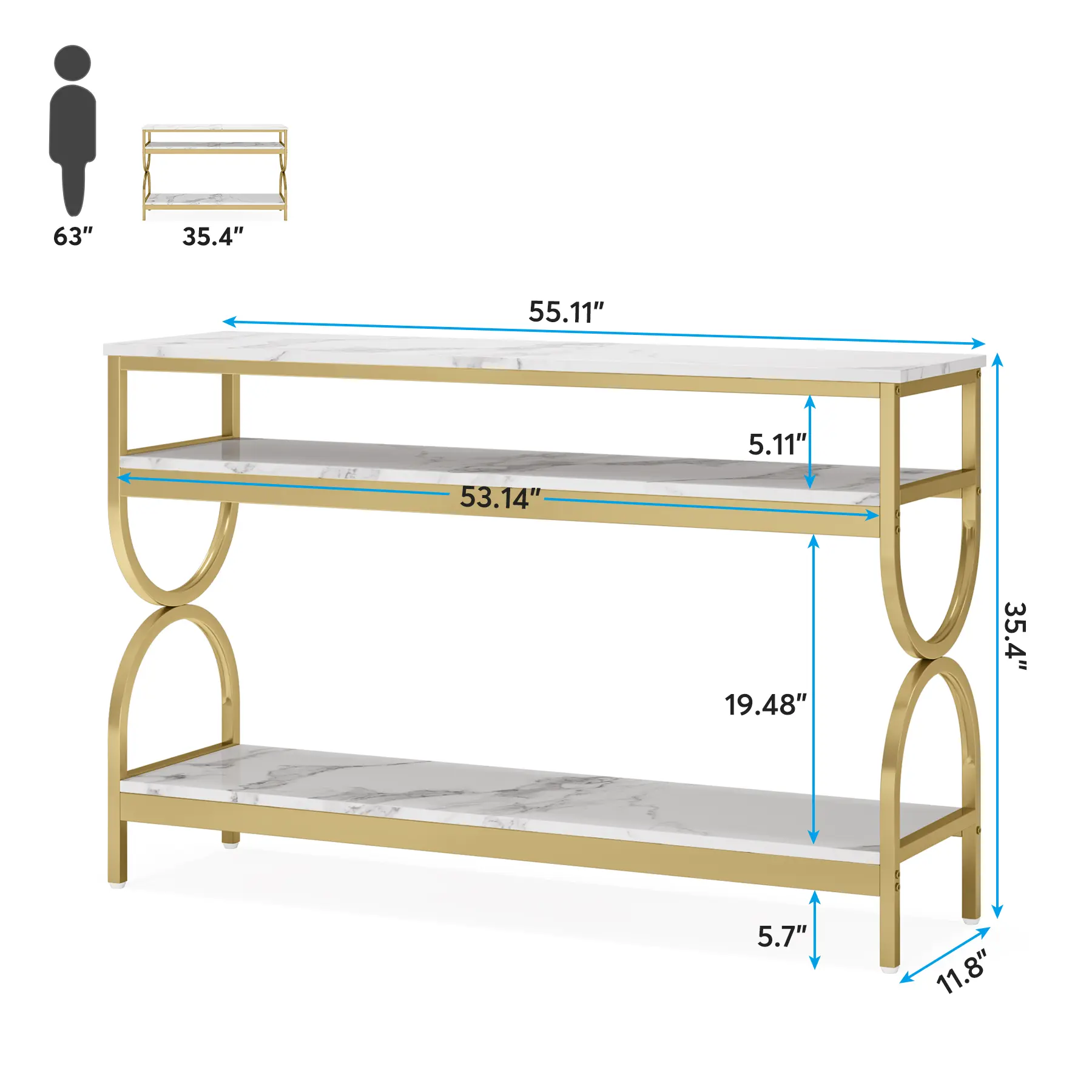 LITTLE TREE 3-Tier Console Table, 55 inch Sofa Table with Open Storage Shelves, Narrow Long Hallway/Entryway Table with Faux Marble Top for Home Living Room Entryway