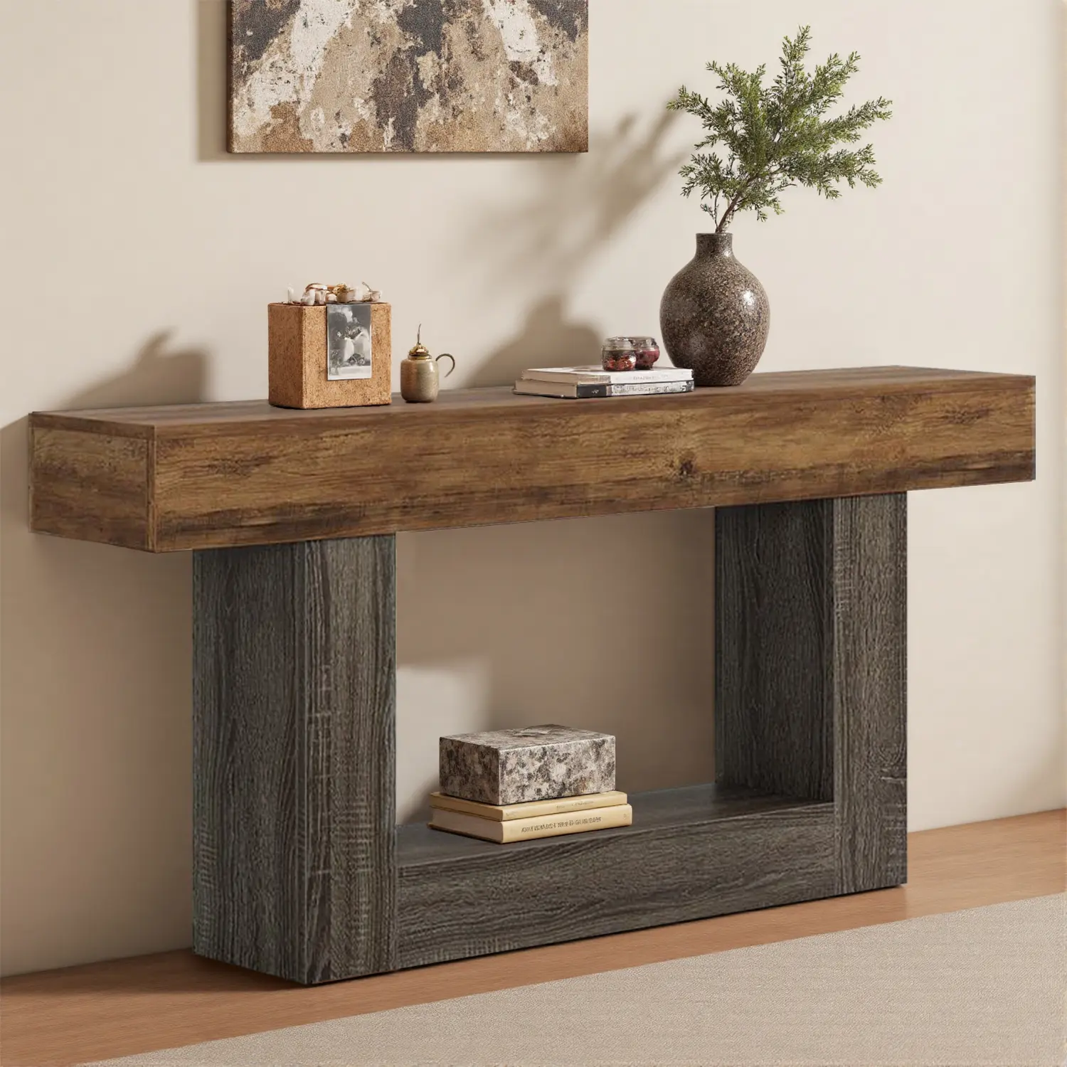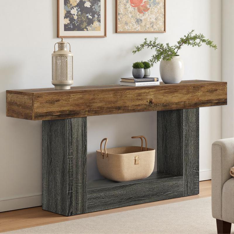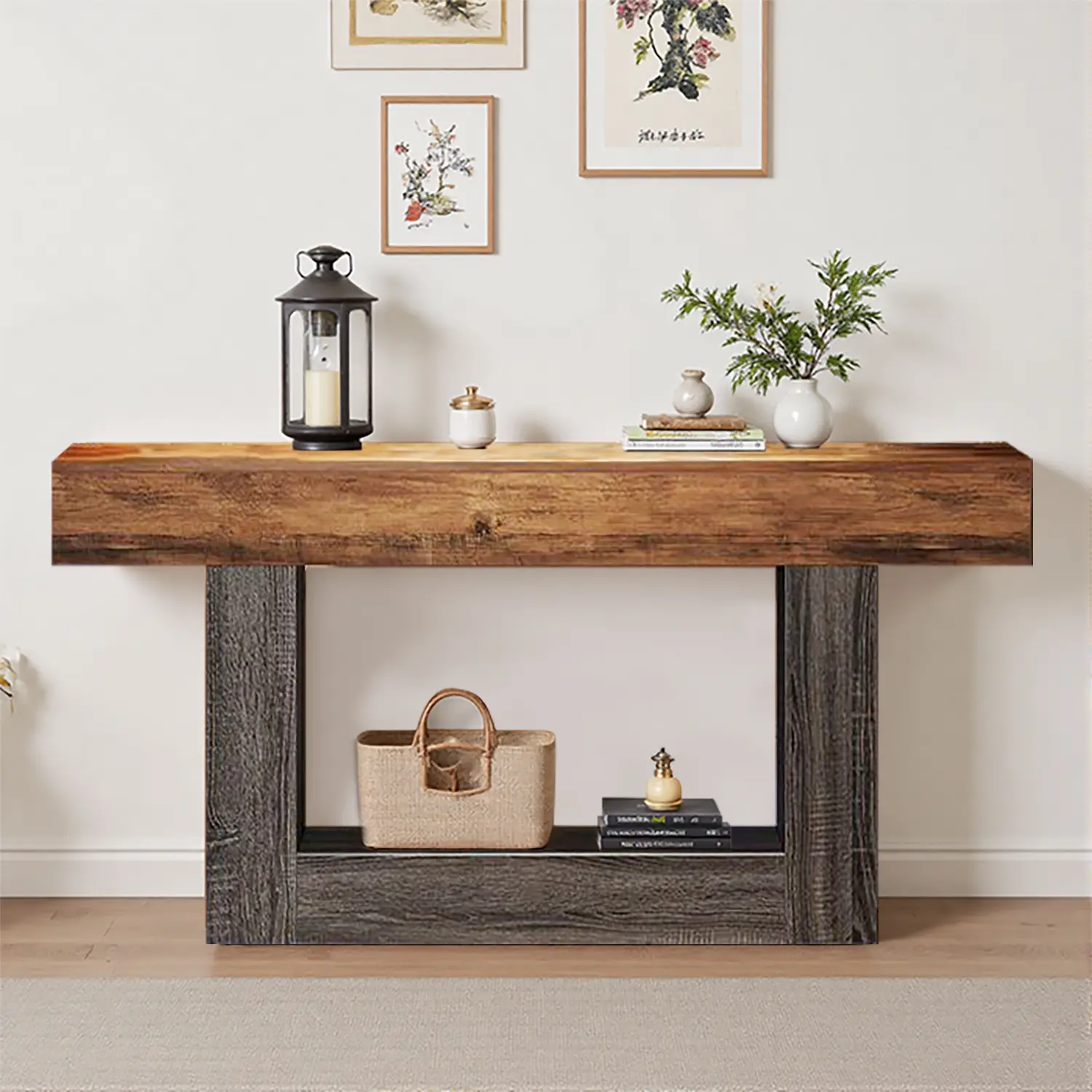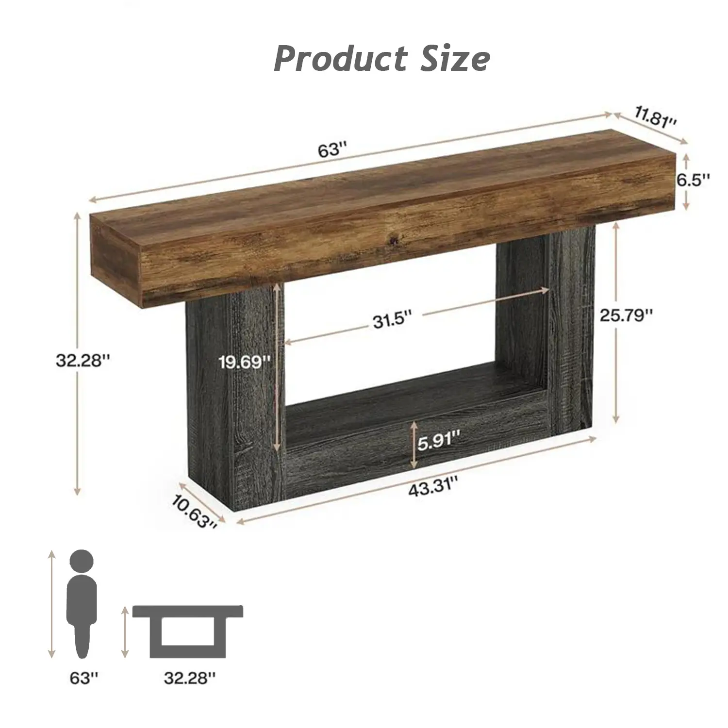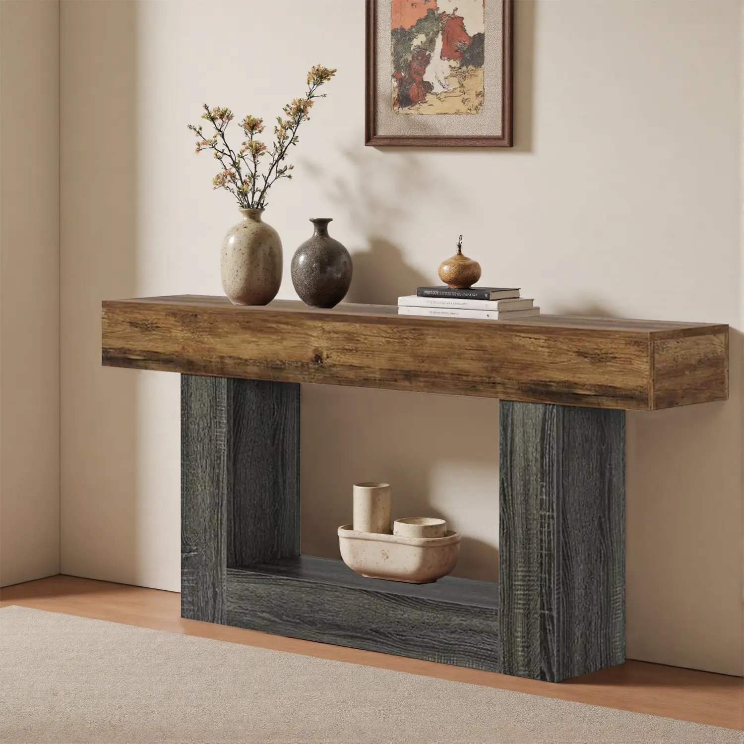 ·Rural Elegance Console Table: Boasting an authentic farmhouse aesthetic, this 63" console table combines rustic simplicity with a striking two-tone design, providing a charming addition to any decor.