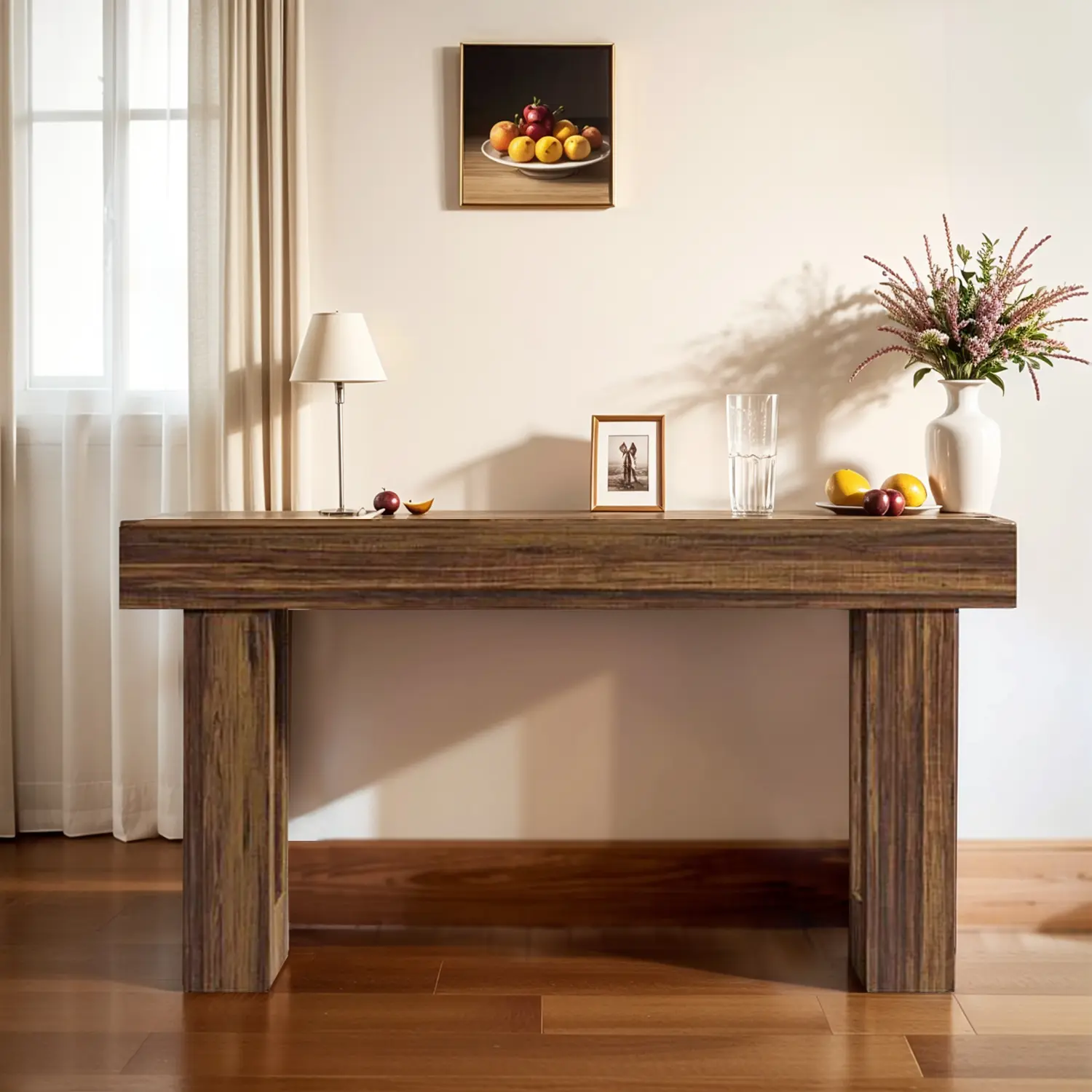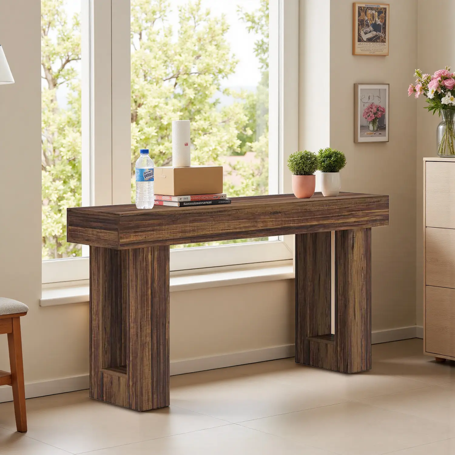 ·【Utilitarian Design for Multiple Home Areas】: The console's unassuming yet elegant look lends it versatility. Whether used as a stylish surface in the entryway, a functional piece behind the sofa in the living room, or a decorative accent in a hallway or dining area, the console table proves its adaptability across different home settings