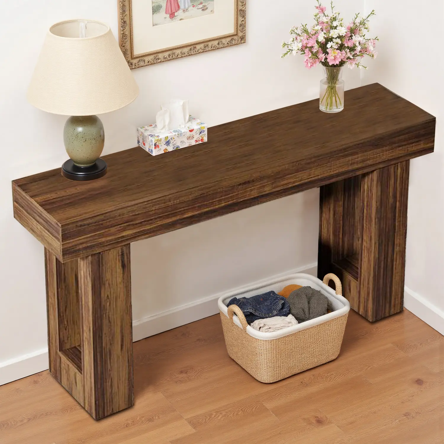 ·【Sturdy Craftsmanship and Material 】: Built using engineered wood MDF, the console table is designed to withstand daily wear and tear. Its appealing wood-like finish contributes to an authentic aesthetic, enhancing its rustic appeal and solid construction