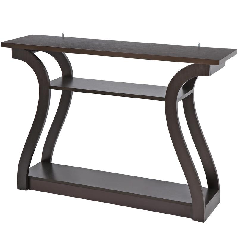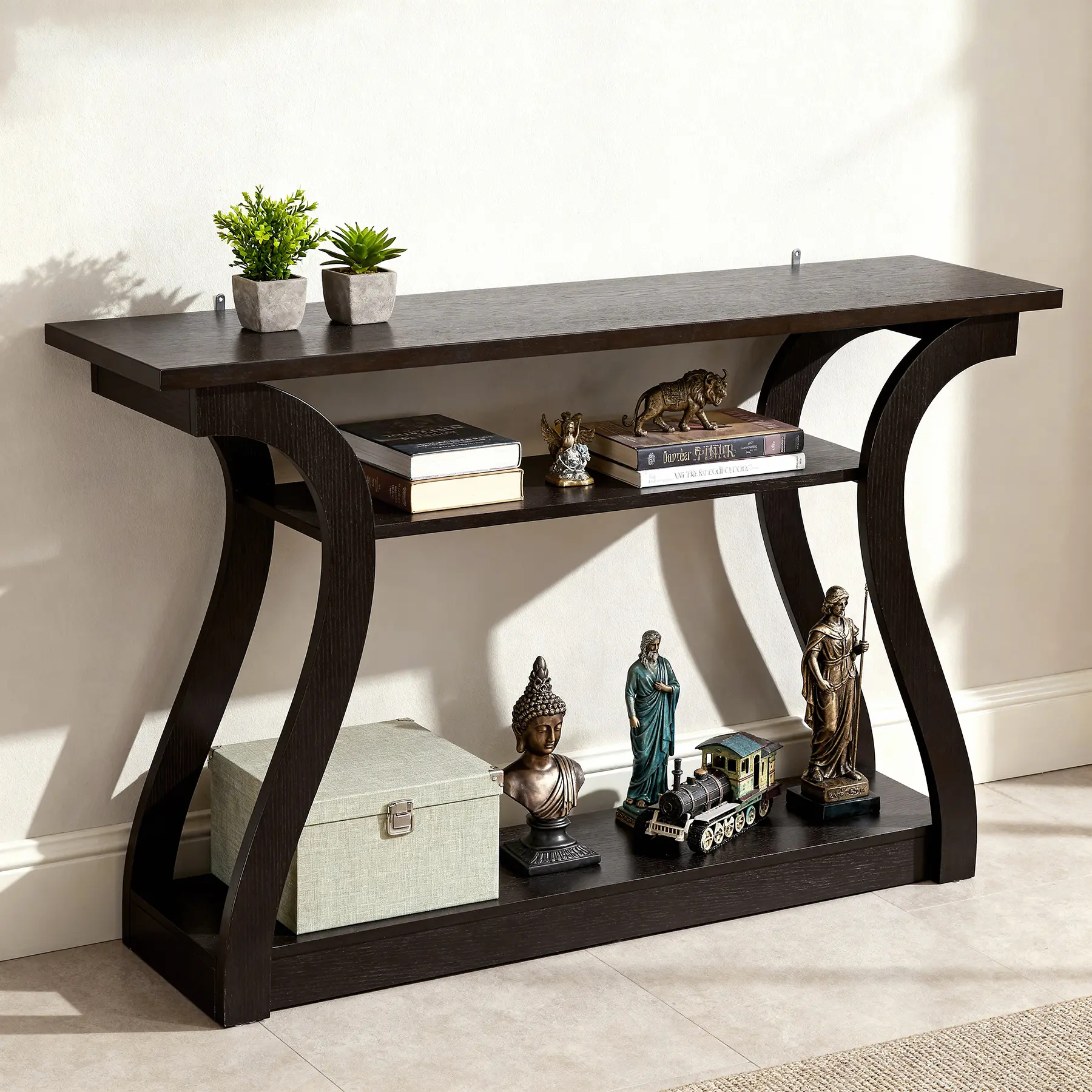 Thanks for choosing our Console Table. This simple fuscous MDF finish entryway will help you store some daily things. Its coffee color suits every decoration style doorway. MDF Boards and metal accessories keeps this console table stable and long-lasting.Apart from your entryway, you can also put it in bedroom living room for storing as a little rack.