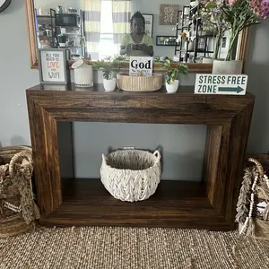 Add a touch of rustic charm to your space with our Rustic Farmhouse Console Table. Lovingly crafted from solid wood, it features a large storage space suitable to spruce up any living room, hallway, next-to-sofa area, or stairway landing. Its easy assembly makes it a convenient addition to your home.