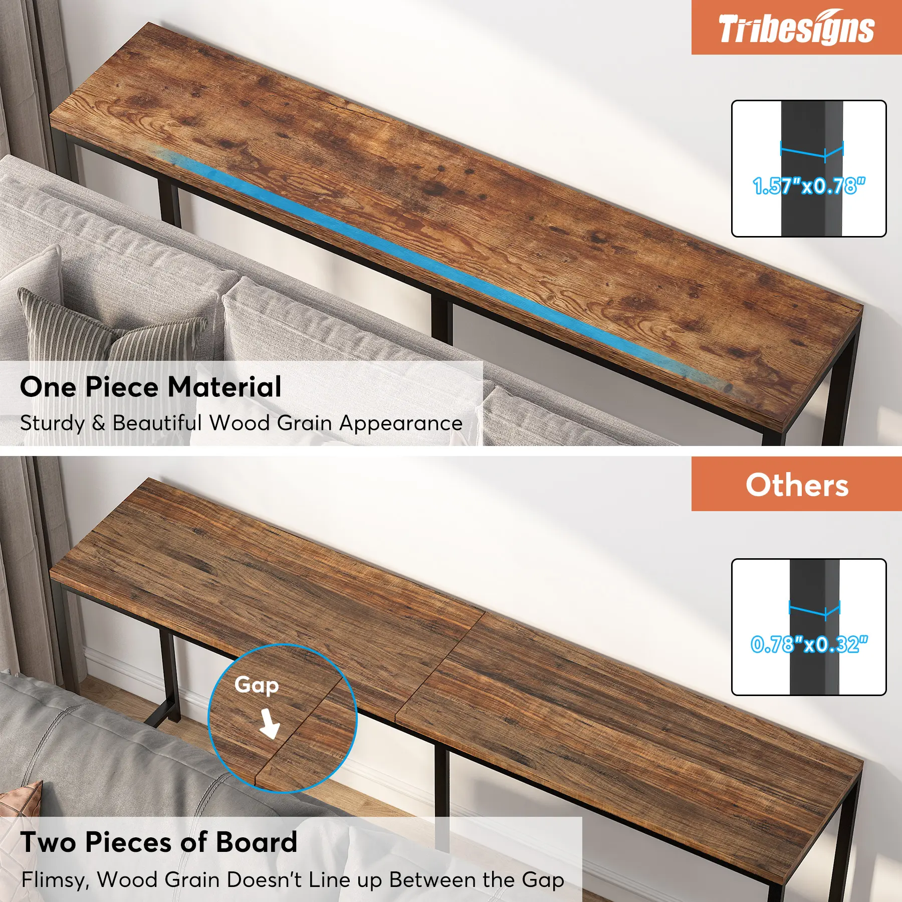 5. Tribesigns Extra 71 inch Narrow Long Sofa Couch Console Table