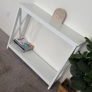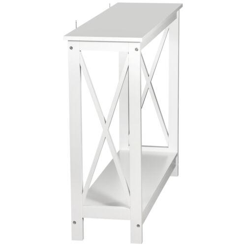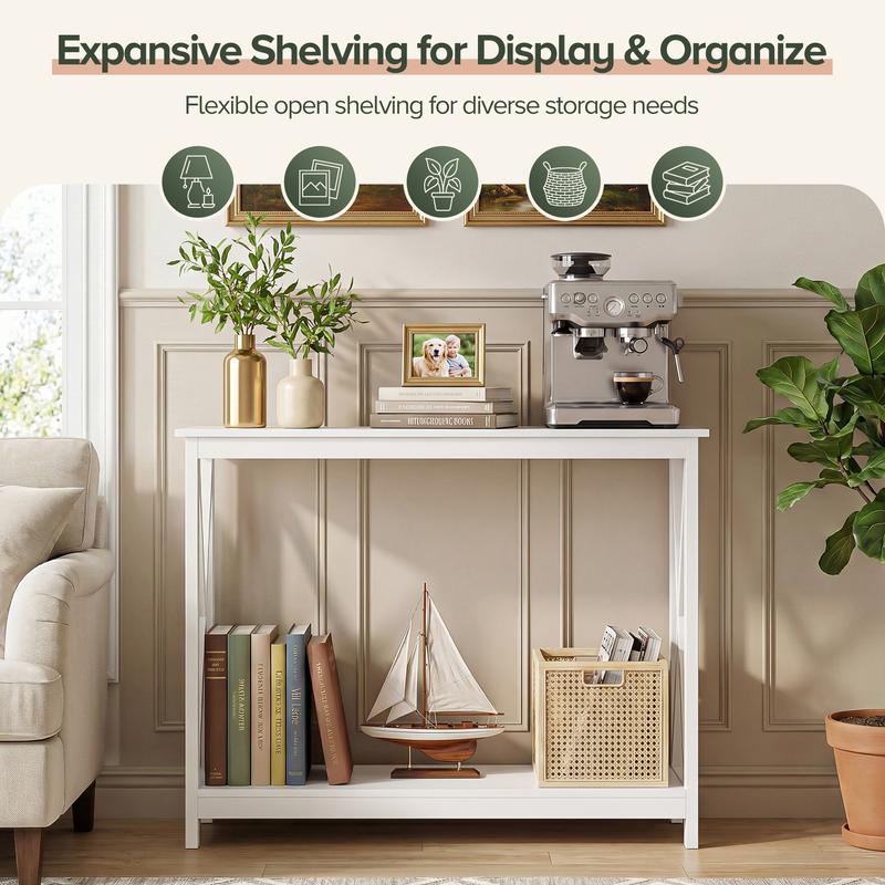 Designed to fit snugly behind sofas or in entryways, this compact yet functional console table brings stylish storage to any space. Its two-tier shelving offers the perfect display area for decorative accents like vases, photo frames, and books, while the lower shelf keeps magazines and small items neatly organized.