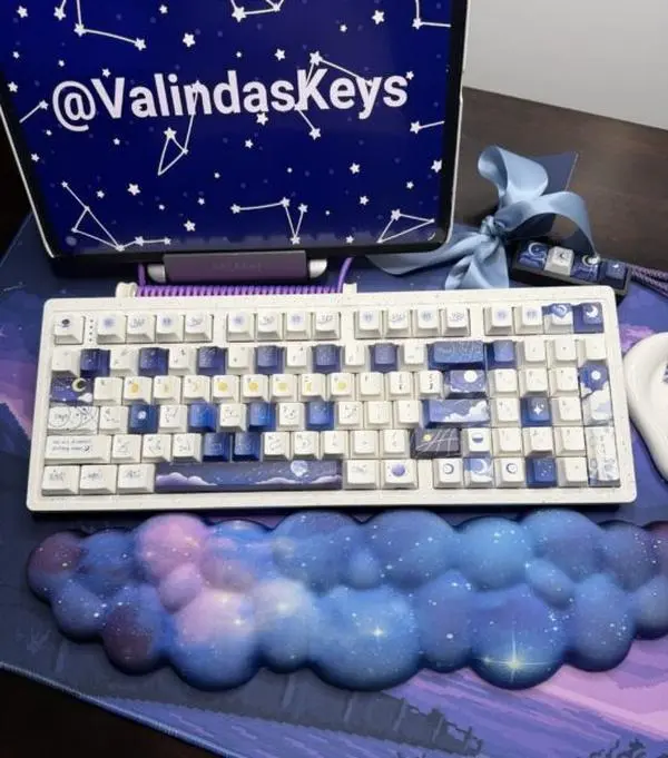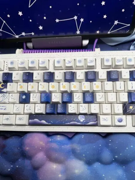 98% layout. Super pretty Artisan Keycaps in a Constellation theme for Star and Moon Theme lovers - Kit designed by @ValindasKeys