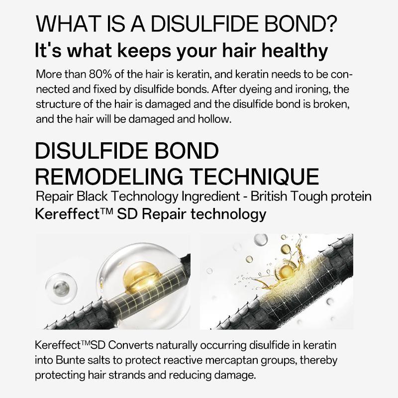🌟 Disulfide Bond Reshaping Technology strengthens hair strands post-dye or perm. The British Tough Protein Kereffect TMSD converts keratin's disulfide bonds, protecting active sulfide groups and reducing damage. This technology rebuilds damaged bonds, preventing breakage. Trust CLINSIS for cutting-edge hair care solutions.