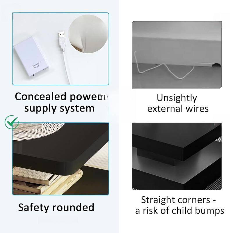 ·☕HIDDEN POWER SUPPLY: Unlike other power systems that require wires and outlets, our unique coffee table uses a hidden battery box and only requires 3 AA batteries. No need to worry about cords tripping your kids or pet friends!