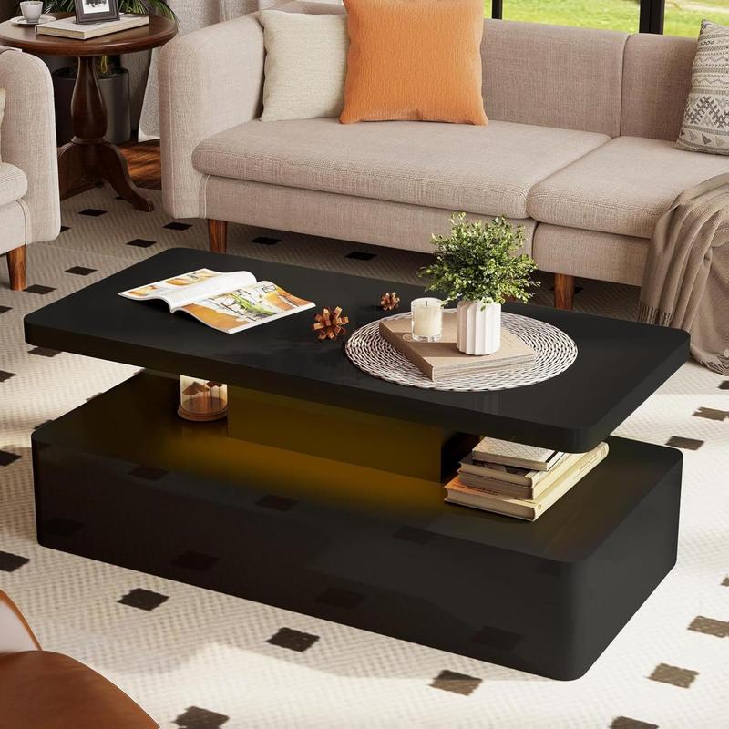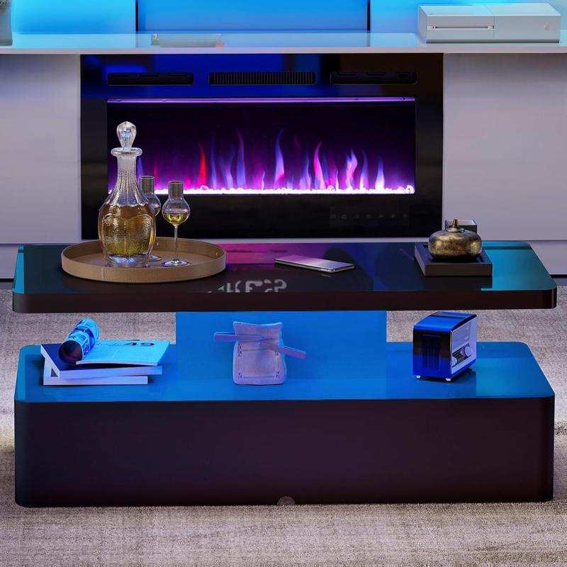 ·☕ADJUSTABLE LED LIGHTS: This coffee table is equipped with LED strip lights and remote control, 16 colors variable and 4 flashing modes, low power consumption and stable performance, bring your living room warm & romantic or dynamic & hot vibe.