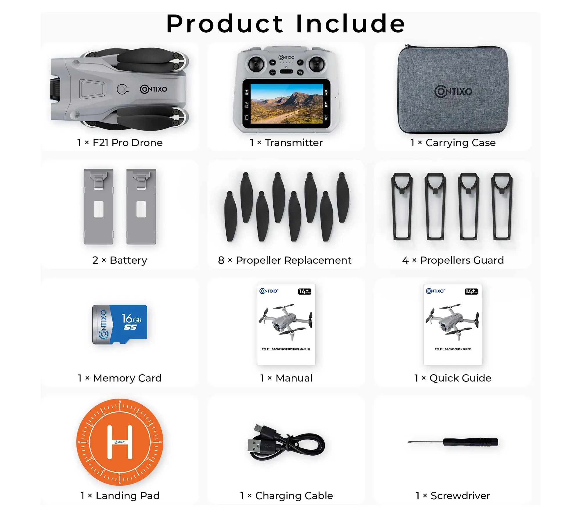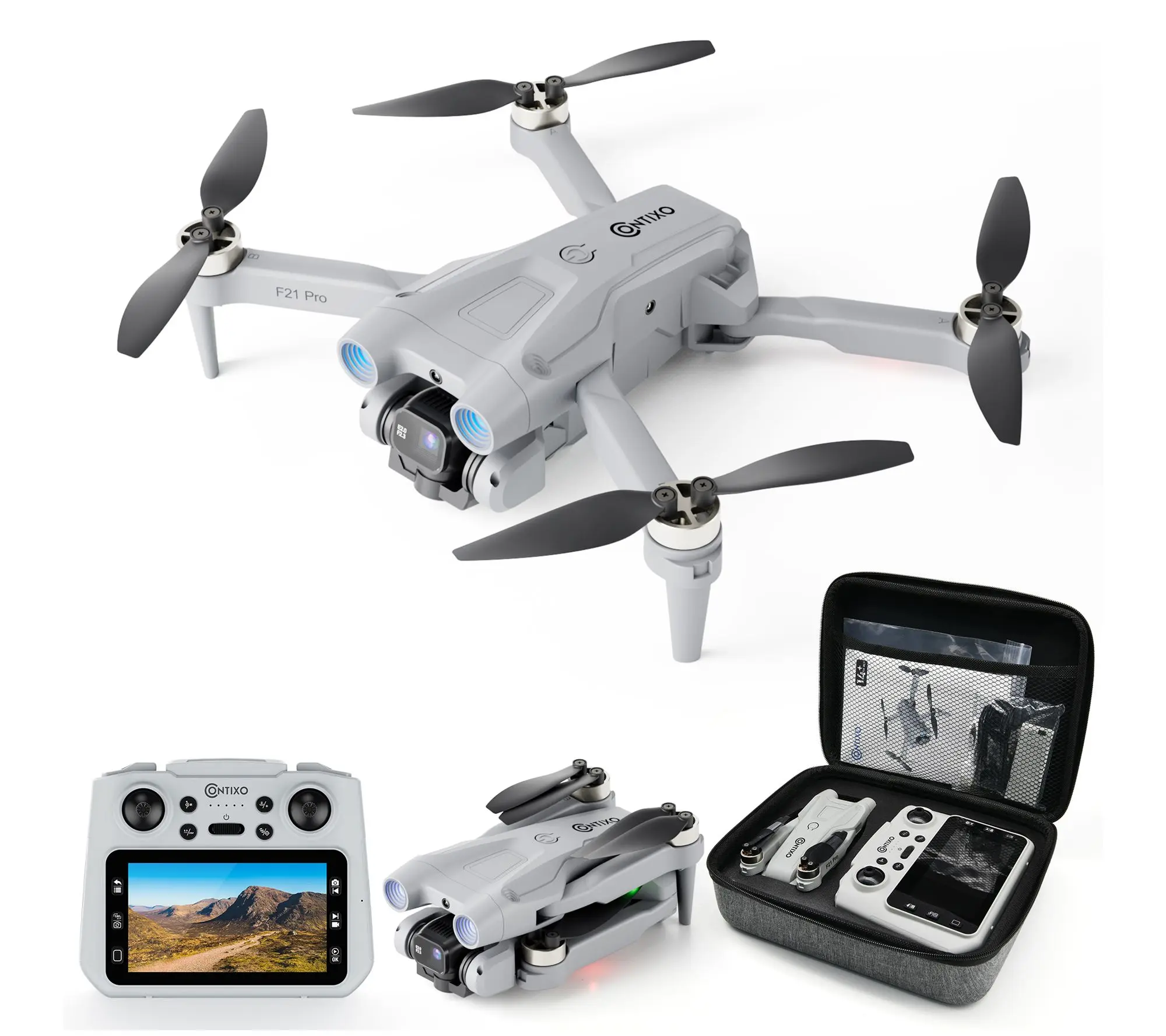 Ever wanted to capture stunning aerial shots without fumbling with your phone? Meet the Contixo F21 Pro Mini FPV Drone. This compact quadcopter features a built-in 4.3" FPV screen on the remote, so you can enjoy live video streaming without extra devices. Whether you're at a picnic, park, or backyard hangout, this drone is ready to fly. It boasts three-way obstacle avoidance and stable optical flow hovering, making it a breeze to control, even for beginners. Adjust the camera tilt remotely from +15° to -90° to catch every angle perfectly. Plus, with two rechargeable batteries, you get extended flight time to explore more skies. The lightweight design under 249g means no FAA registration hassle, so you can focus on fun. Your purchase includes everything you need: drone, transmitter, carrying case, landing pad, spare propellers, charging cable, memory card, screwdriver, and manual. Ready to elevate your adventures? Grab the Contixo F21 Pro and start soaring today!