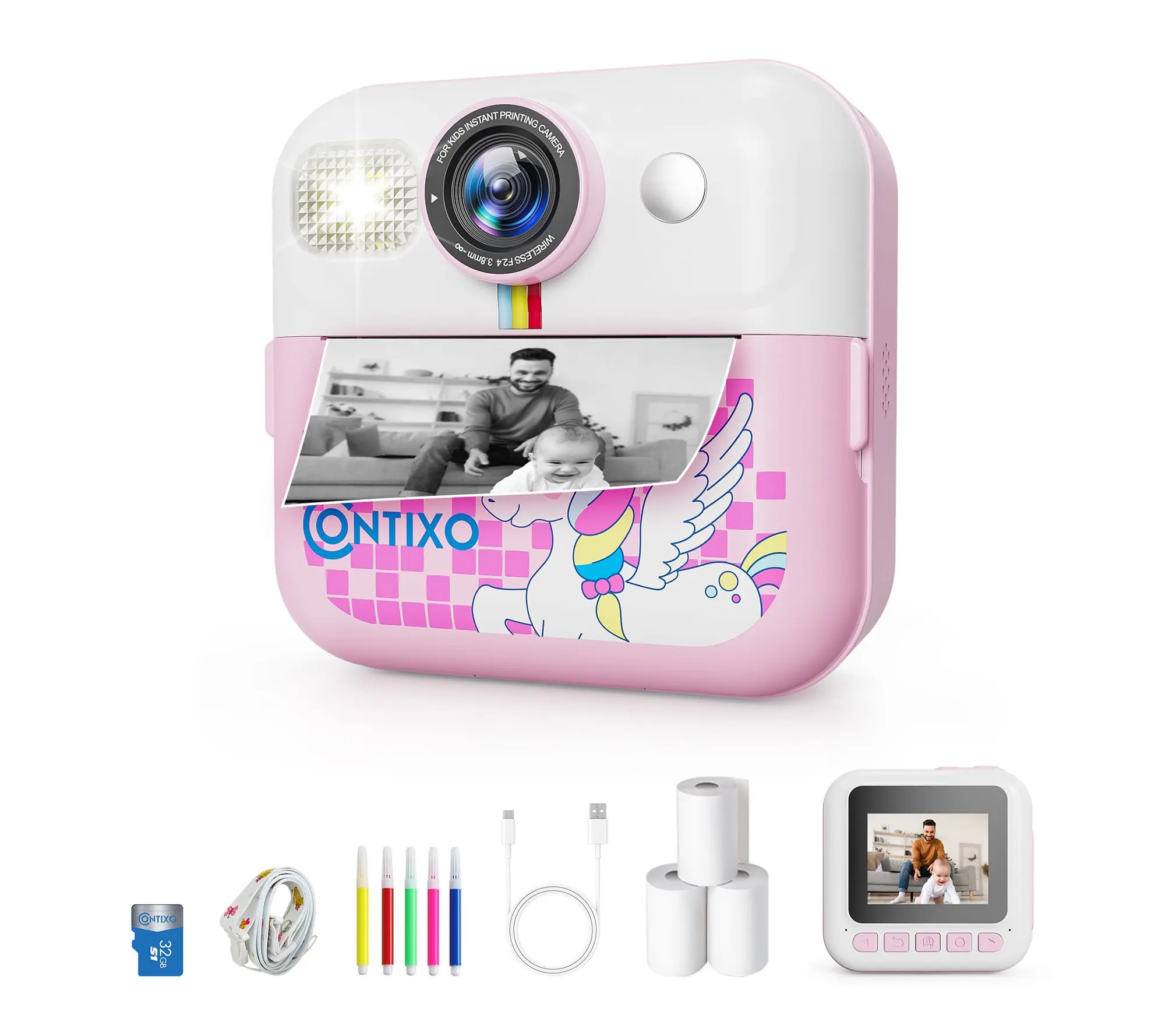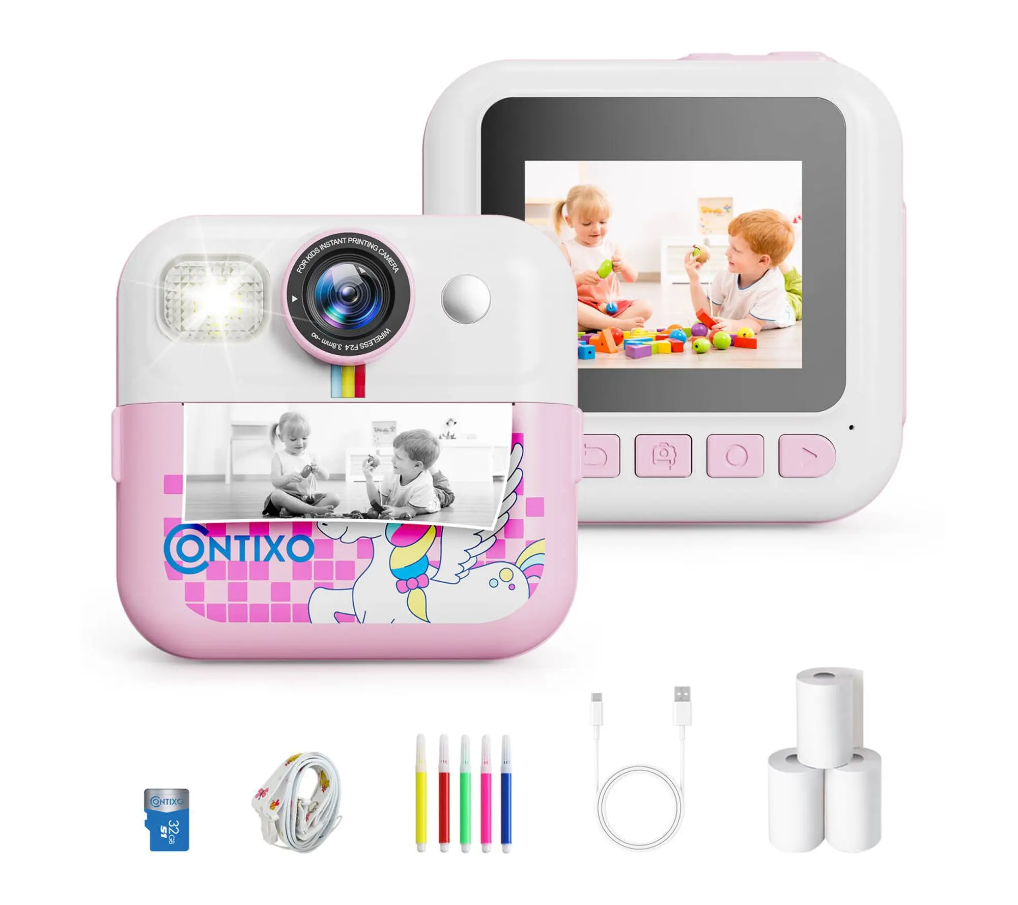 Kids can capture everyday adventures, print photos instantly, and share memories with friends -- all on their own digital instant print camera. Easy controls and soft grips make it ideal for younger hands, while the instant print feature lets moments come to life in seconds. From Contixo.