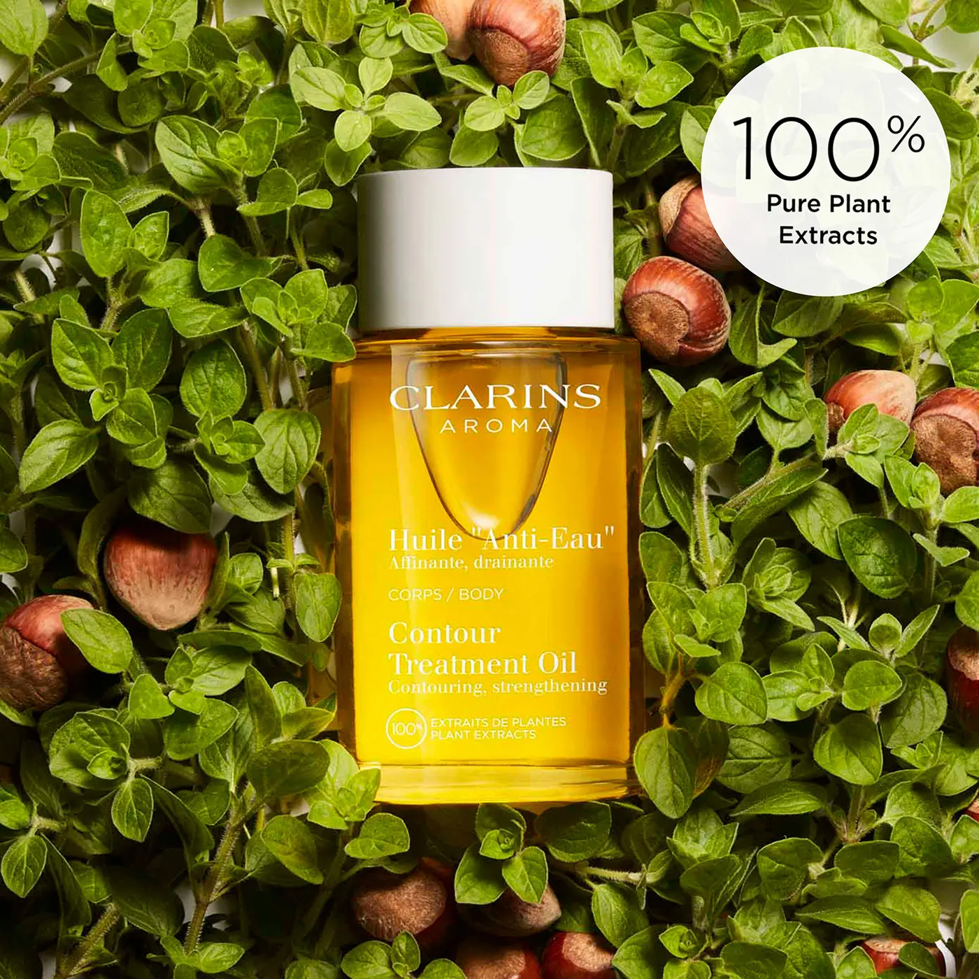 Contour Body Treatment Oil is a formula of 100% natural origin. The cap is composed of 92% post-consumer recycled material, and both the cap and glass bottle are 100% recyclable. The carton is made of cardboard sourced from sustainably-managed forests .