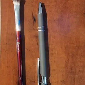 Love this brush for eyeshadow! This is super soft and next to the Angie hot and flashy concealer brush for size comparison. Still tapered but less dramatic.