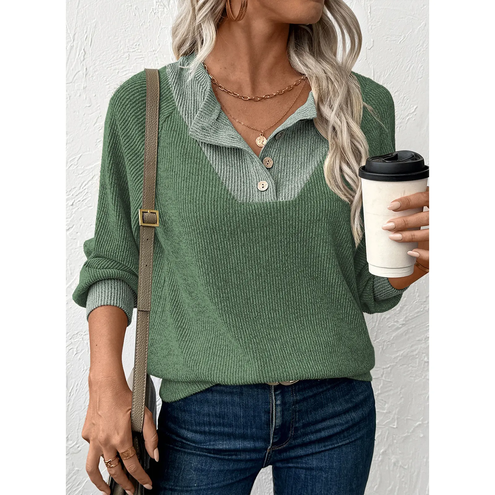 Very comfortable sweater. It’s light weight and the material is super soft. Perfect for a fall day.