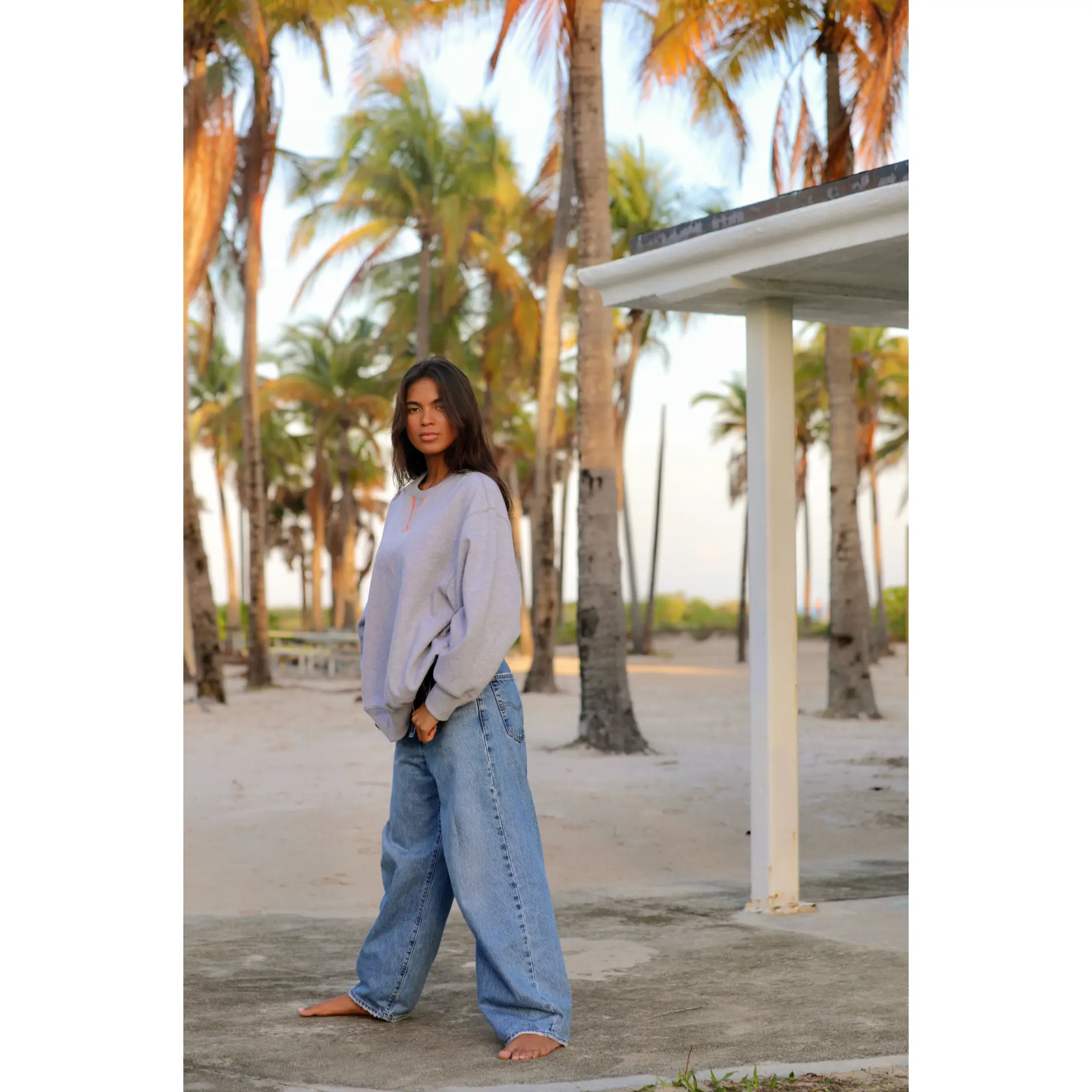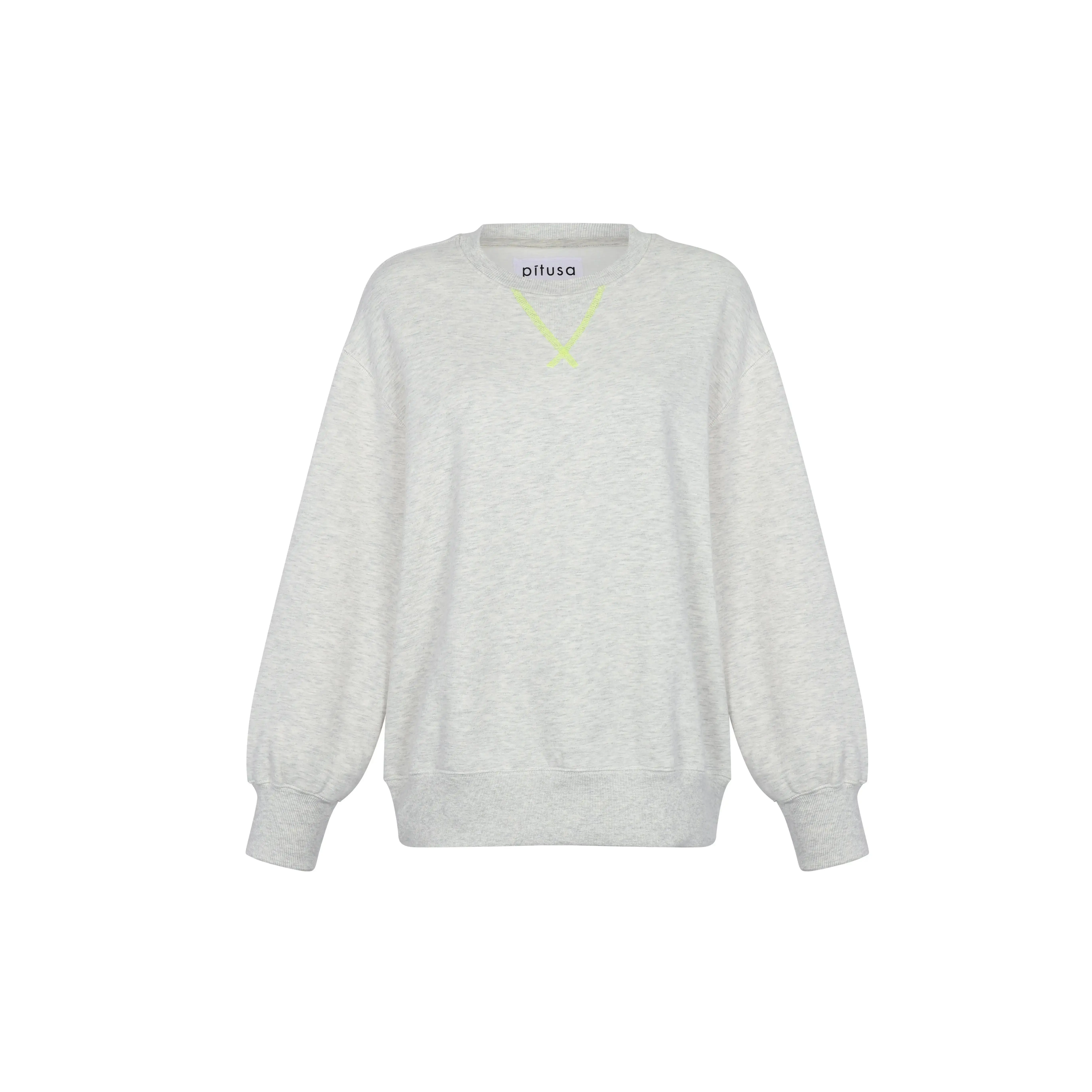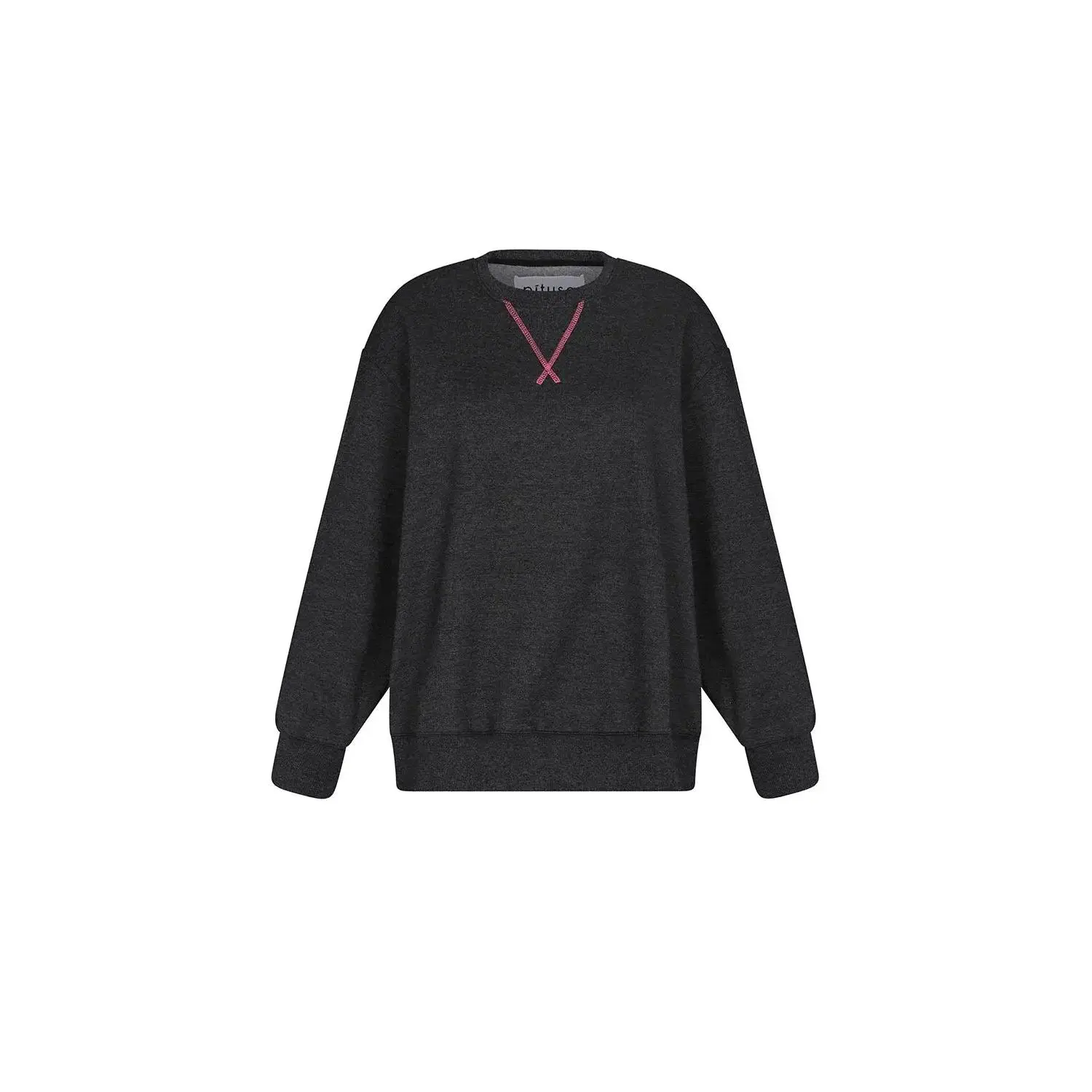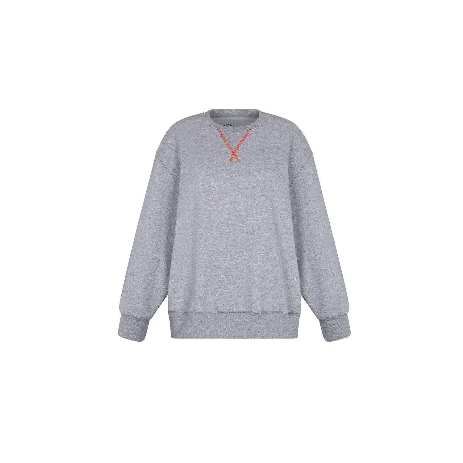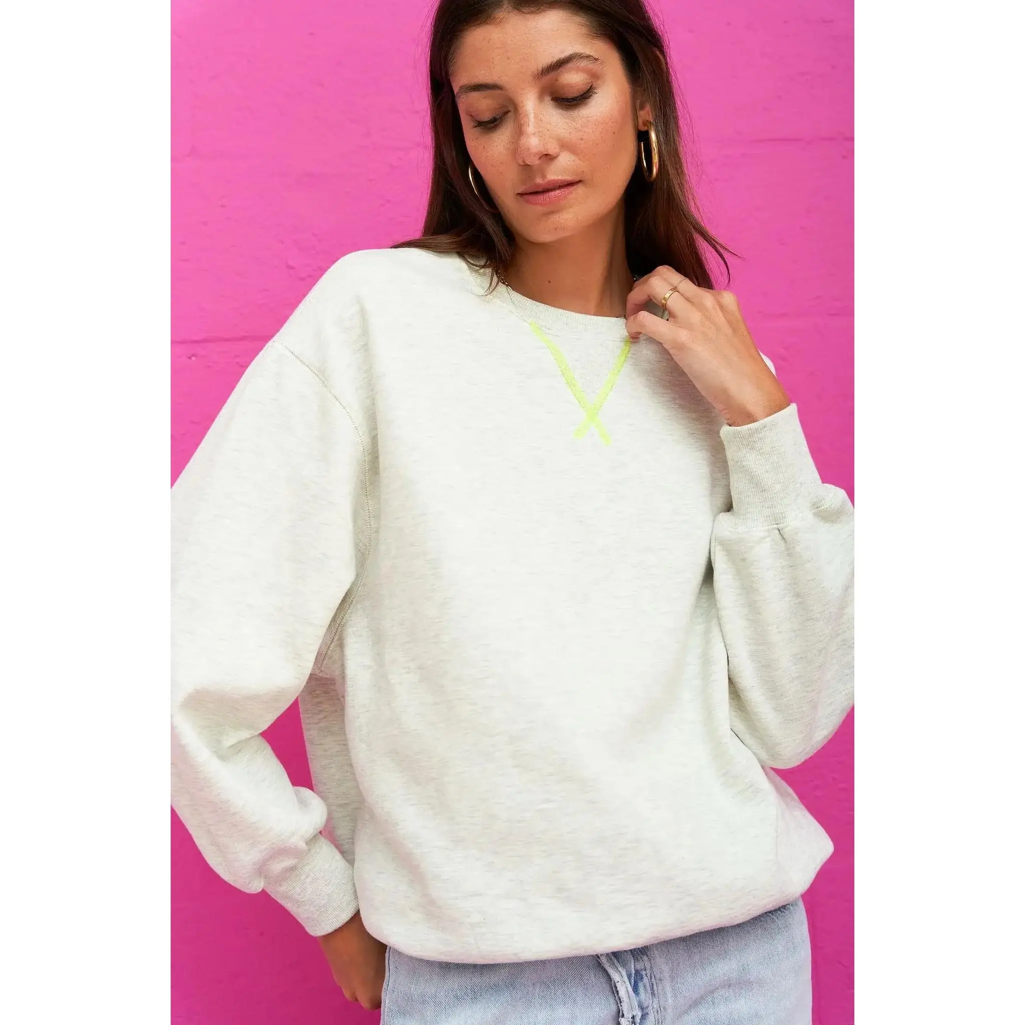 Lined with soft-to-touch fleece, the Basic Contrast Stitch Sweater has a comfortable, oversized fit that features a heathered pullover style with a cozy feel.