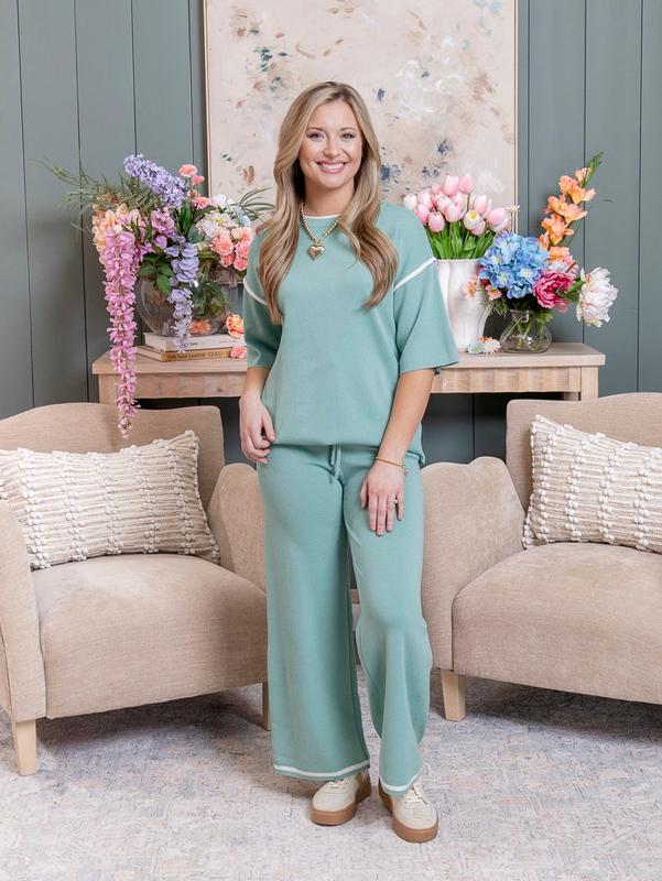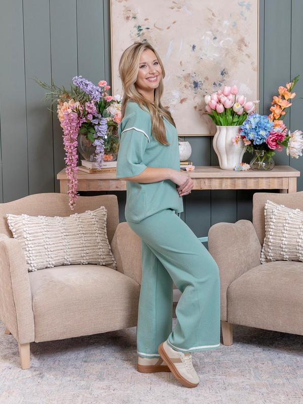 5. Contrast Trim Short Sleeve Top Drawstring Pants Sweater Set | S-2XL
