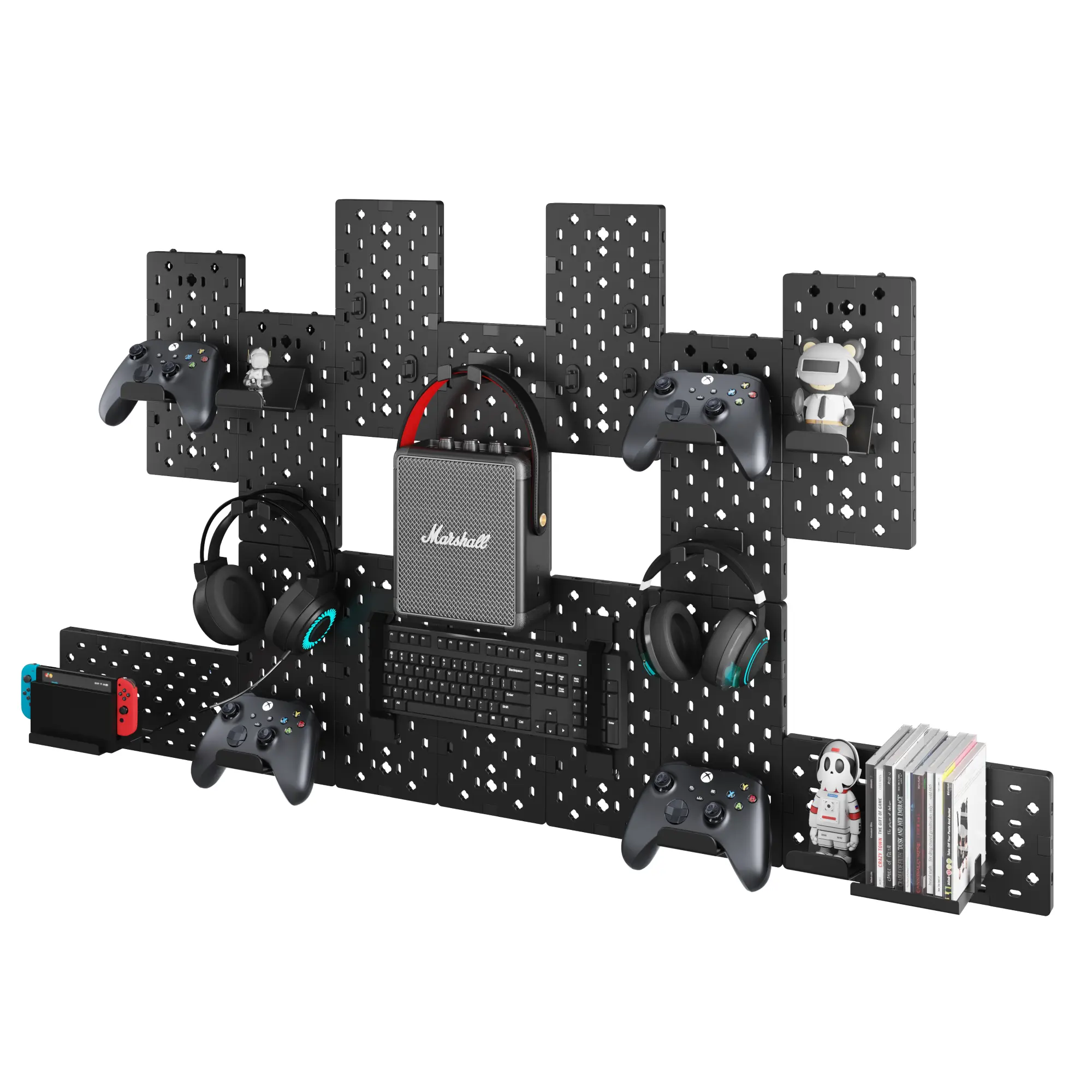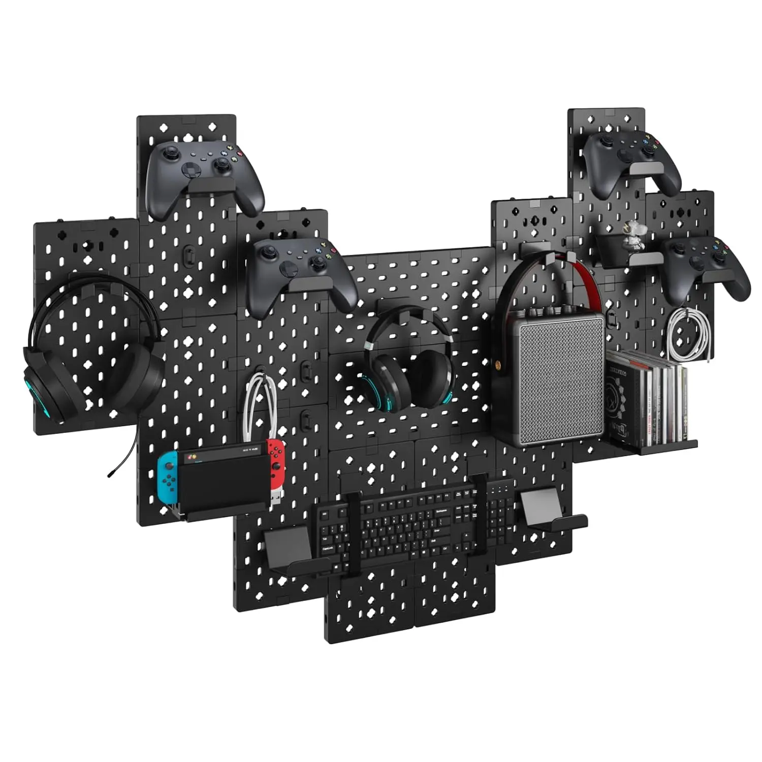 Stylish & Versatile: Choose from Black, Black & White, or Black & Red, in 7-piece or 14-piece sets. This modular pegboard is easy to install with clear instructions and video guides, making it the perfect addition to your gaming room accessories.