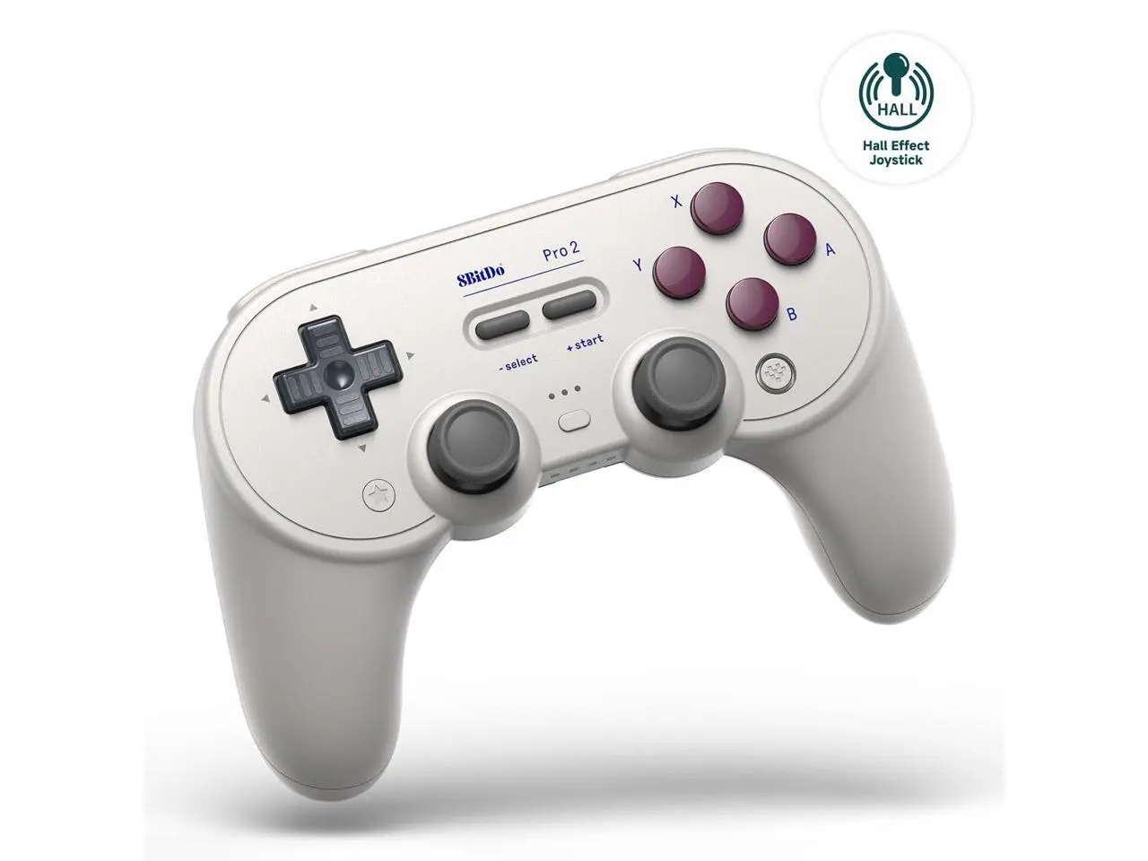 8Bitdo Pro 2 Bluetooth Wireless Gaming Controller with Hall Effect Joystick Update for Switch, PC, Android, and Steam Deck & Apple - G Classic