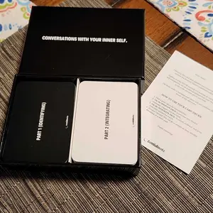 "Conversations with Your Inner Self" offers an immersive solo card game experience meticulously crafted to guide players on an inward journey. Split into two distinct decks, this game is a tool to delve into uncharted areas of your psyche, nudging you to engage with the parts of yourself that often remain unacknowledged. As you navigate through thought-provoking questions and introspective challenges, you will begin to get the roots of your emotions.