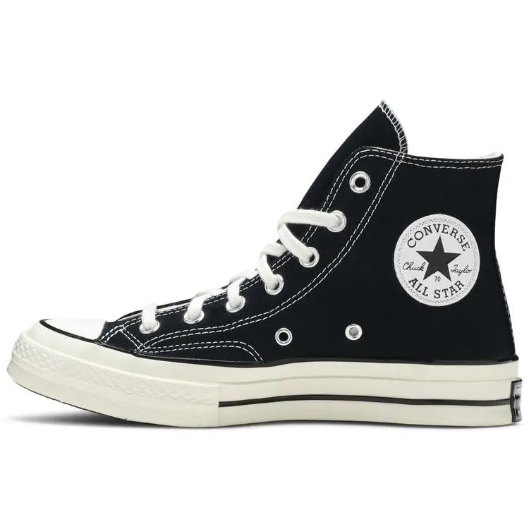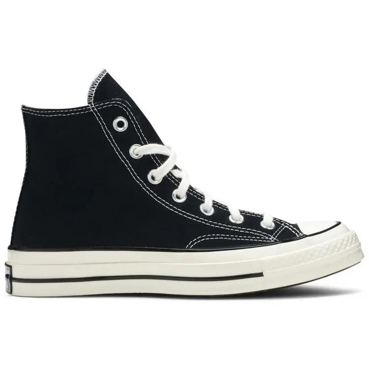 ## Converse Chuck 70 Hi - Black**Classic comfort, elevated.** Durable canvas, vintage details. Runs **large!****Size Guide (US):*** 7 = 25cm* 8 = 26cm* 9 = 27cm* 10 = 28cm* 11 = 29cm **Keywords:** Converse, Chuck 70, high top, black sneakers, canvas shoes, casual shoes, streetwear, unisex.**(Under 300 characters)**