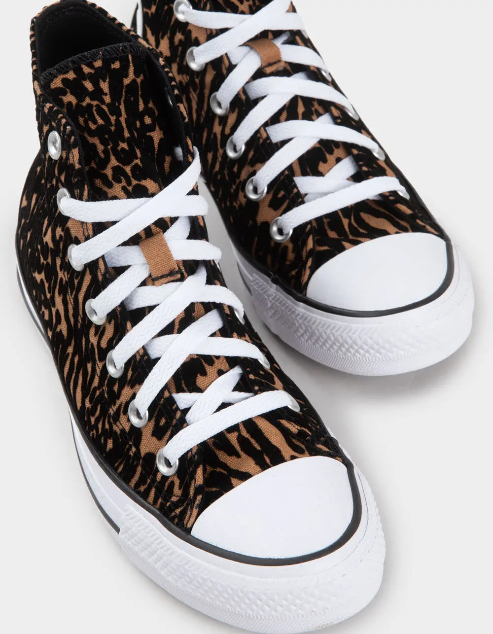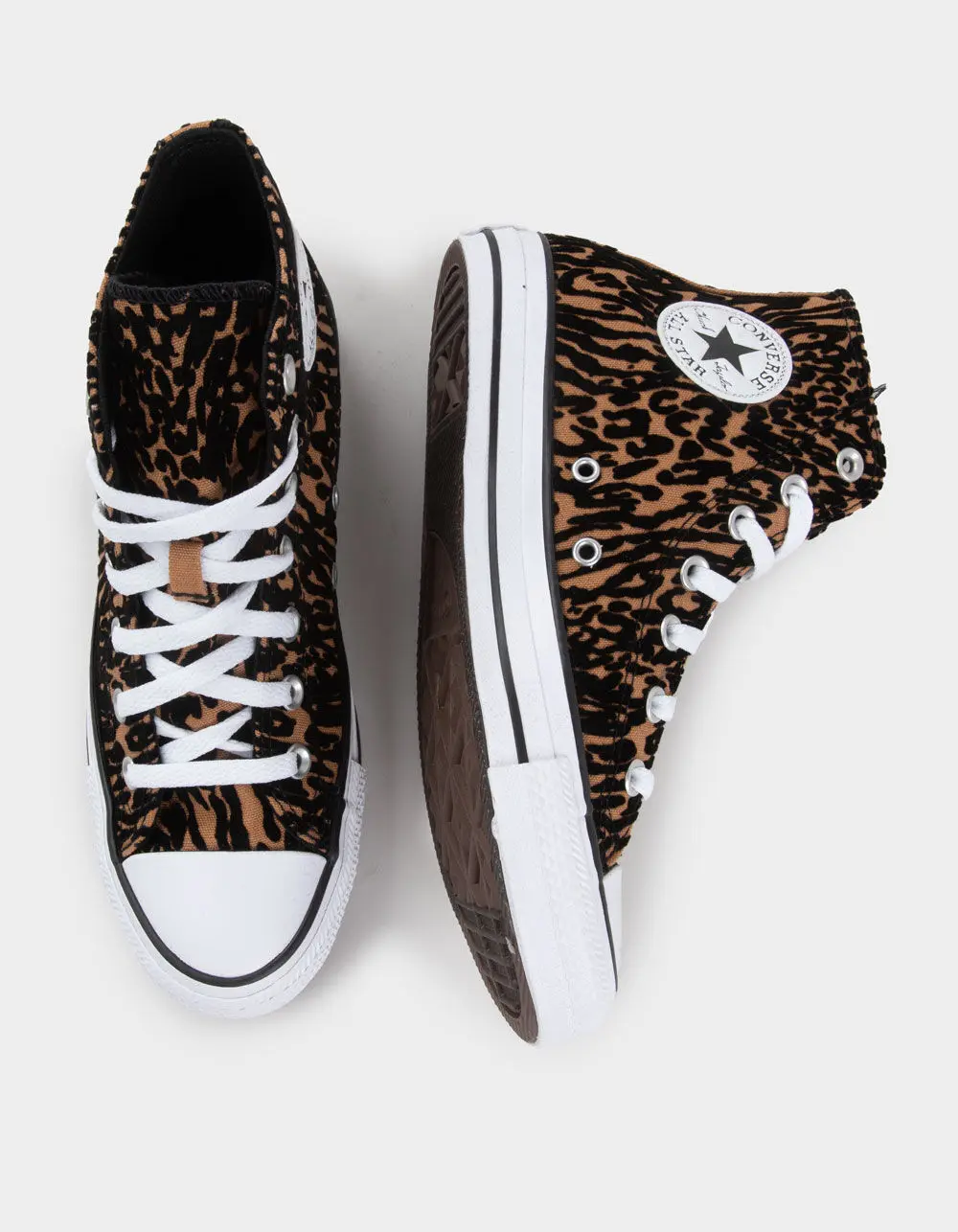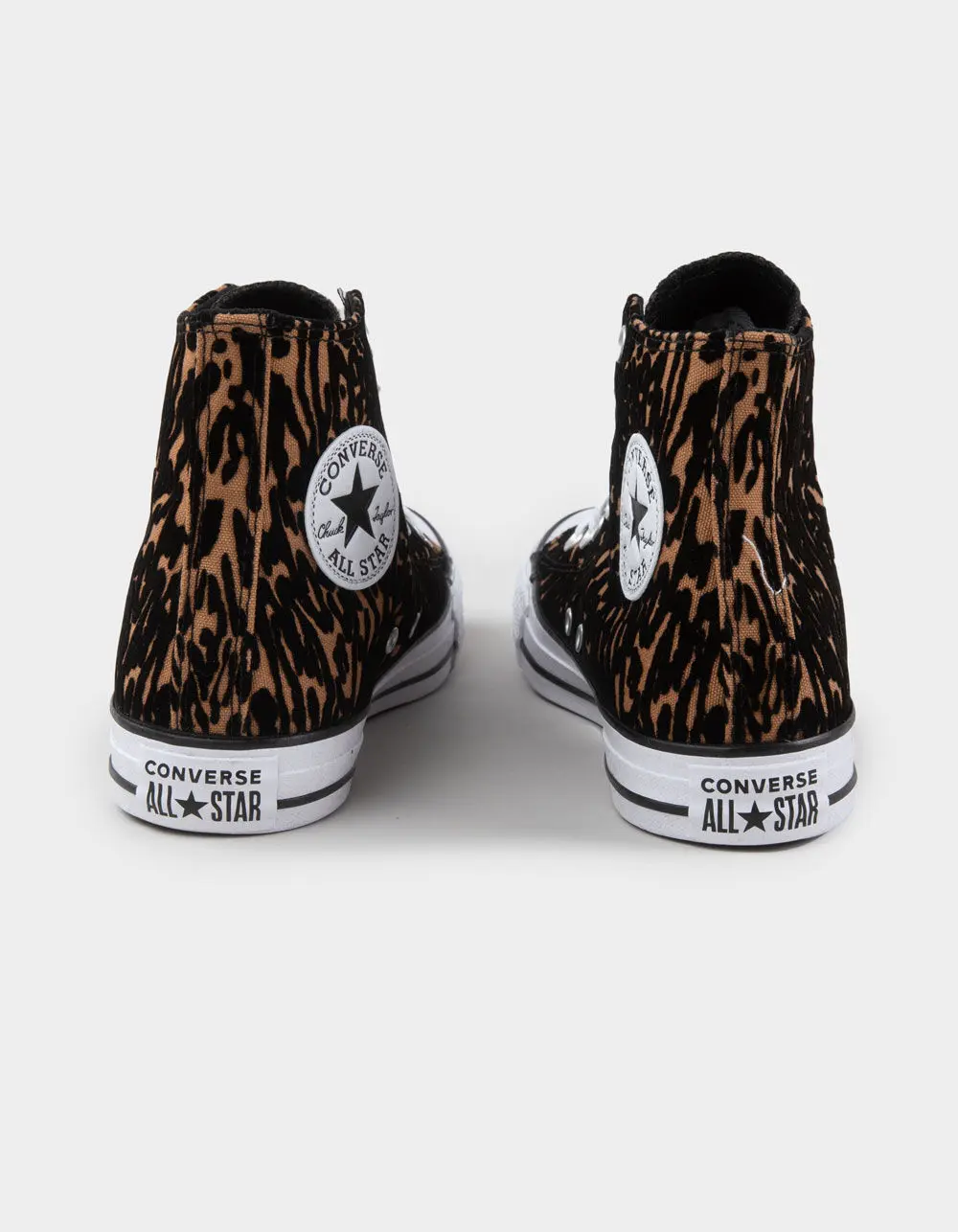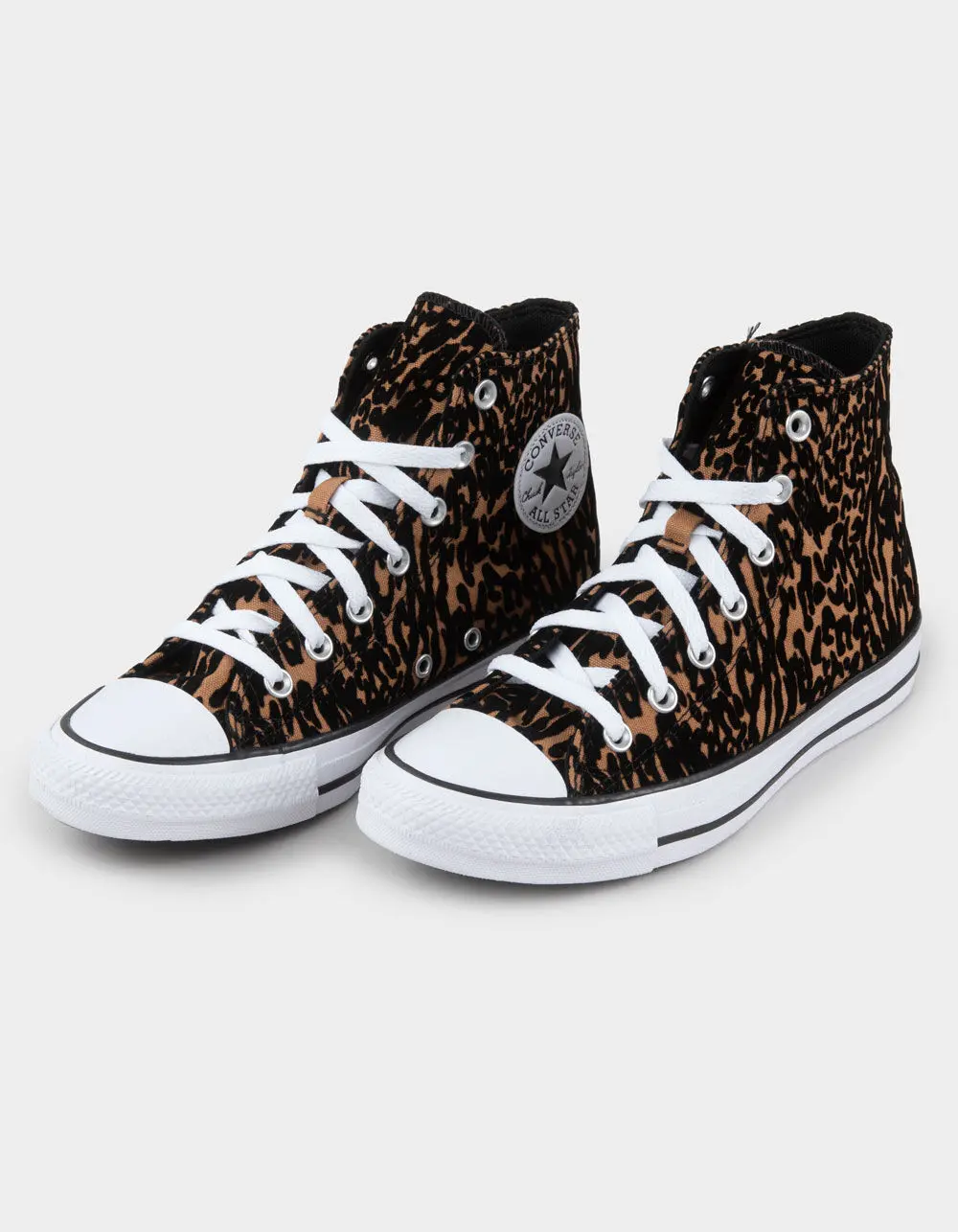 Converse Chuck Taylor All Star High Top Shoes. You already know the details that started on the basketball court—the diamond pattern outsole and classic star ankle patch. Ortho. Lite cushioning gives you all-day comfort. The classic style is complemented by heritage design elements, like a rubber toe bumper and iconic star ankle patch. High-top shoe with flocked leopard print. Classic star ankle patch. Imported.