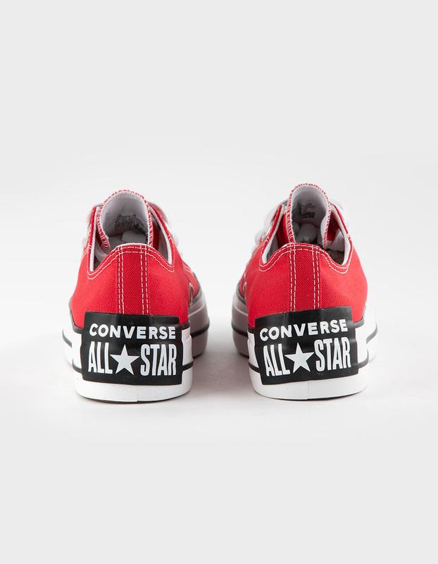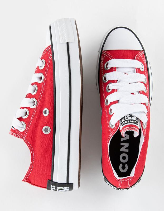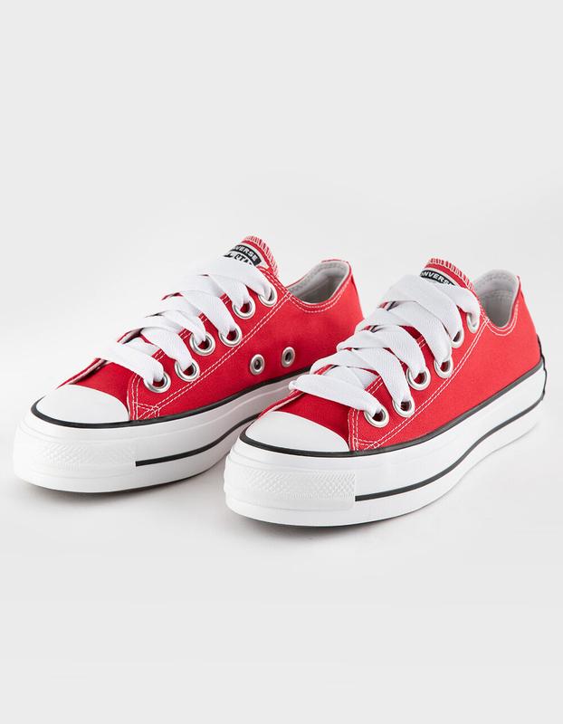 Converse Chuck Taylor All Star Lift Sketch Womens Platform Shoes. A caricature-inspired take on your go-to platforms—this edition of the Chuck Taylor All Star Lift exaggerates unmistakable details in an unexpected way. With signature Chucks style as their muse, these lifted low tops show off your creative side with oversized, undersized, and crooked designs. Punch up your palette in trendy red, or keep it classic in cool colors. Durable canvas upper for that classic Chucks look and feel. Ortho. Lite cushioning helps provide optimal comfort. Oversized, undersized, and lopsided design details for an unexpectedly playful look. Elevated platform adds height. Approximate platform height: 1.5in. Iconic All Star license plate. Imported.