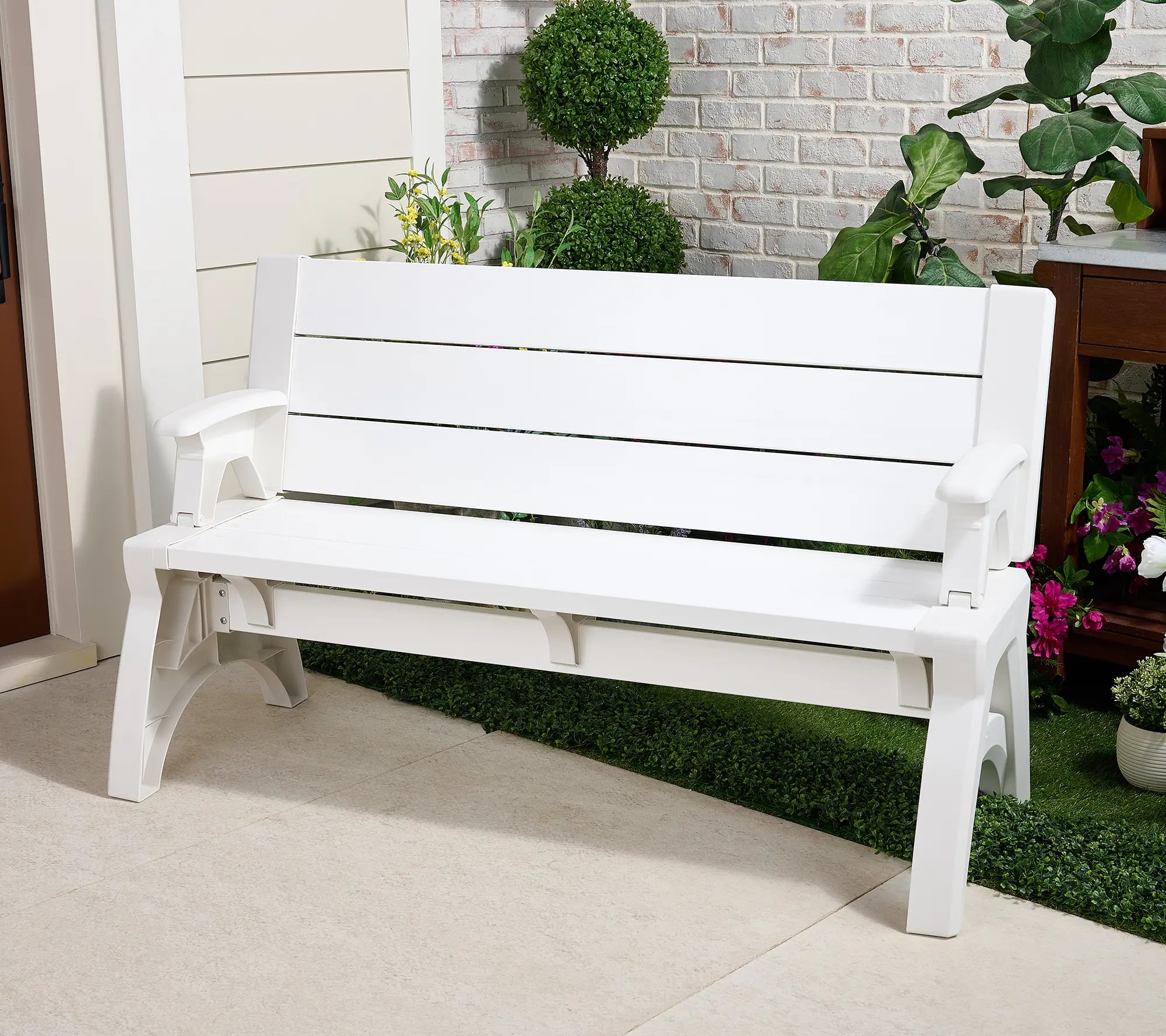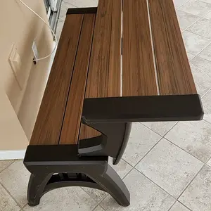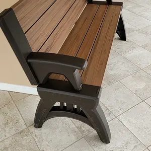 Cheap, not worth the money. Unfinished look. It bows enough when I sit on it to make me think it isn't durable. The molded arms, legs, and supports under the bench are only finished on one side, so you see the internal plastic work on the other side. Looks very cheap. Might return it. Does work tho