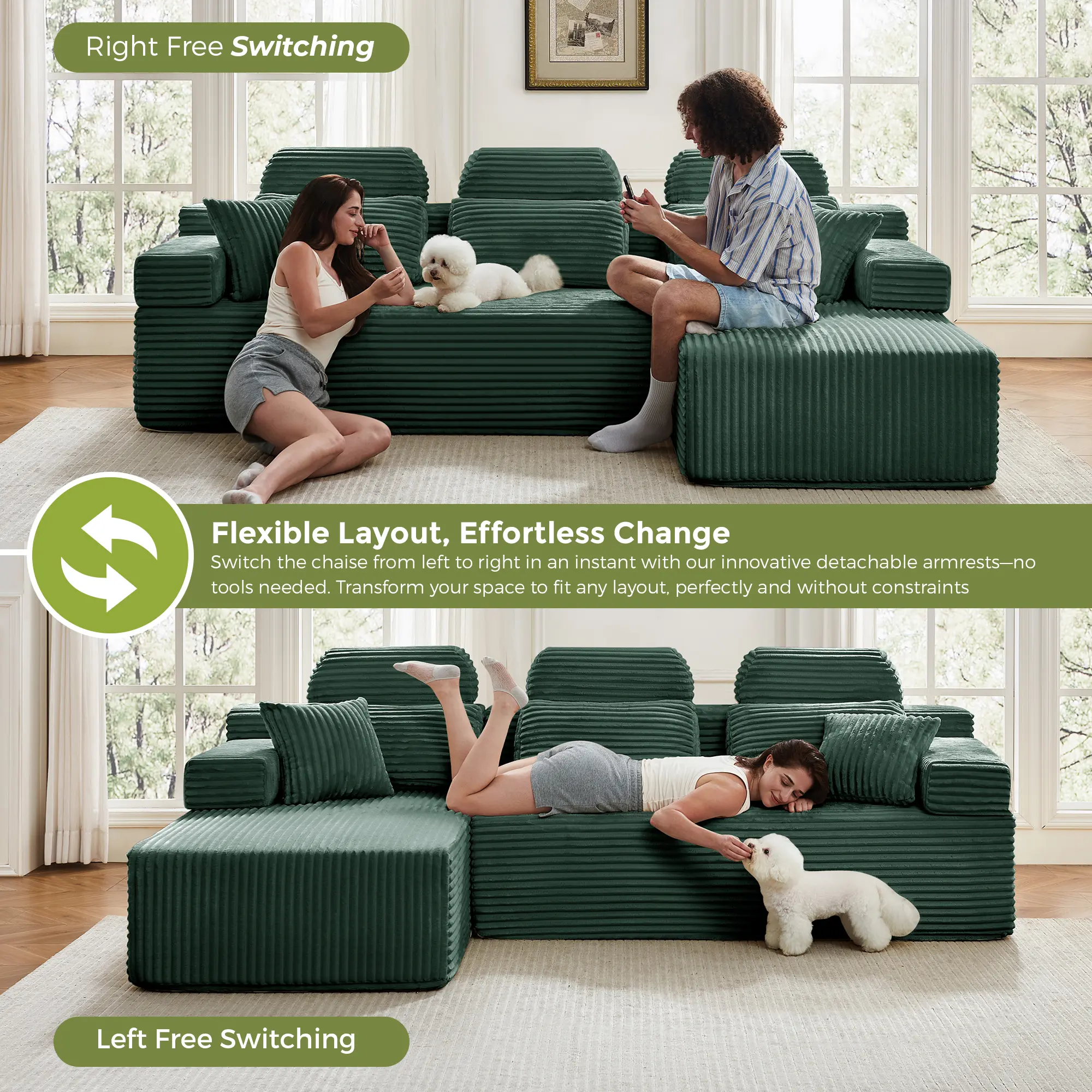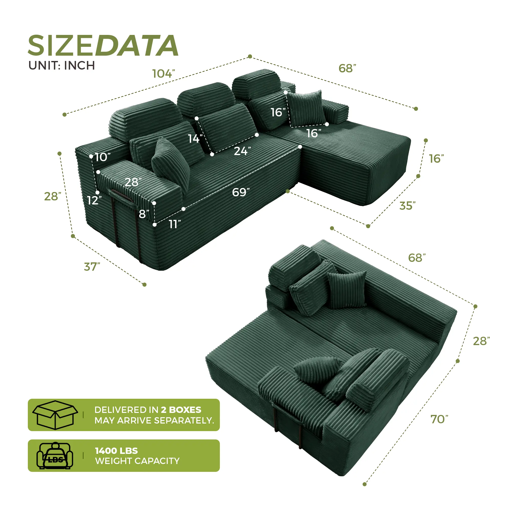 ·Easy Use: The modular sectional couch comes in 2 separate boxes, making it easy to use over narrow corridors or doorways. The boxes may arrive on different dates. Please let us know if you experience any queries.