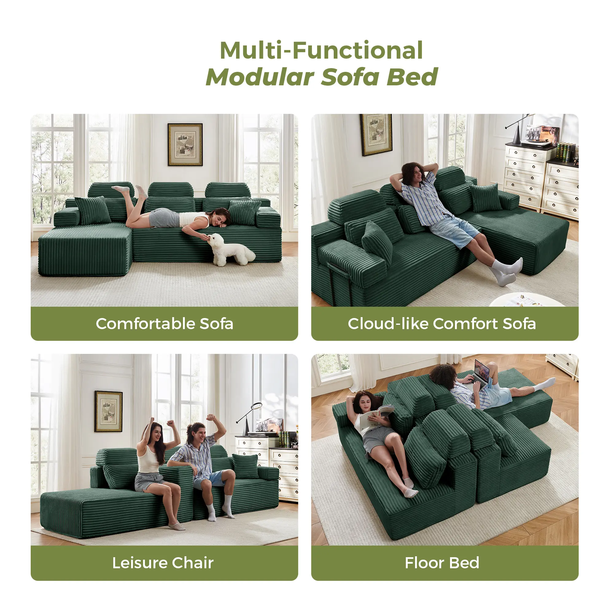 ·Independent Modules: The cloud couch consists of several independent modules that can be rearranged. It can be used as an L-shaped sofa, chaise lounge sofa, or sofa bed. The bottom has anti-slip pads for stability.