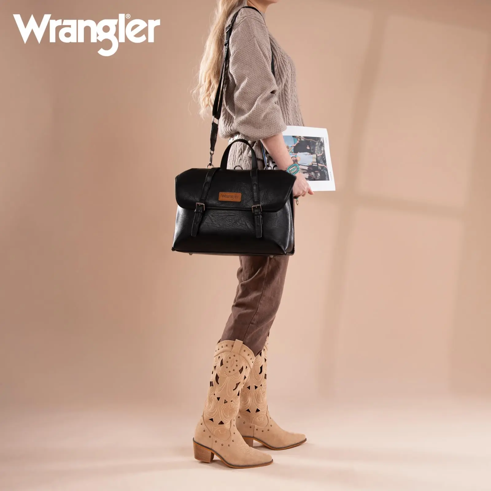 ยทTravel-Friendly: Equipped with a trolley strap, the Wrangler briefcase bag can securely fasten to your luggage, enhancing comfort during travel while keeping your essentials organized