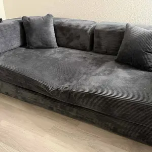 here is an honest review. the corduroy? is soft. inside however it is not; internally it is very hard. it looks aesthetically pleasing though & it doesn’t move when against the wall. i had to buy a topper for any genuine softness, material DOES NOT shape to your body if you are looking for COMFORT.