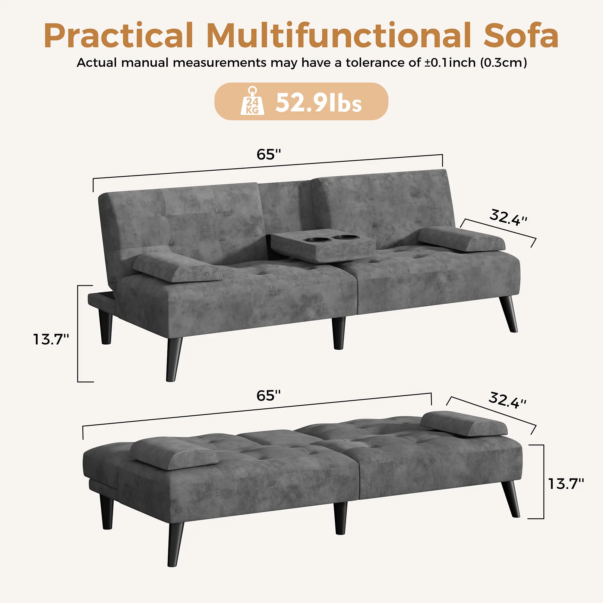 ·Generous Size: With 64'' dimensions, this sofa bed provides ample space for comfort and relaxation, making it ideal for lounging or sleeping.