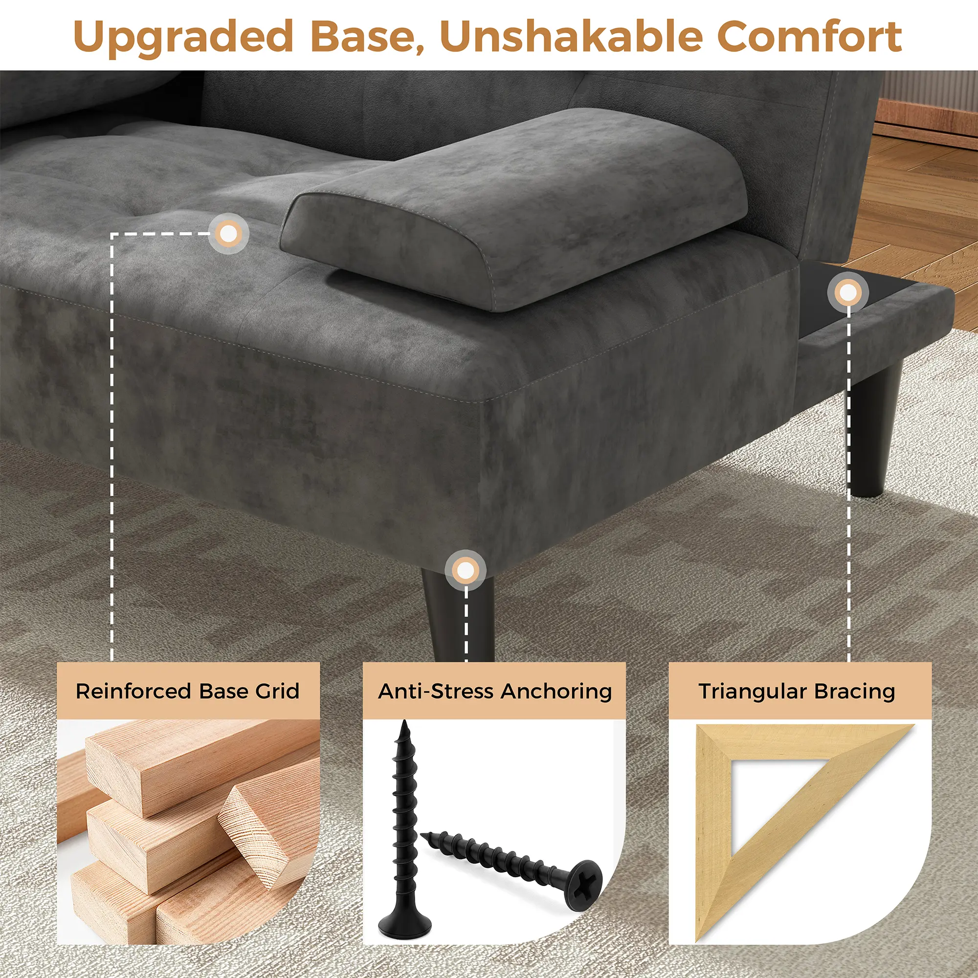 Folding Futon Sofa Bed: With velvet and solid wood legs, this convertible folding futon sofa bed blends comfort and style that will last in your living space for years to come. The sofa bed has two removable cushions that can be used as pillows or cushions