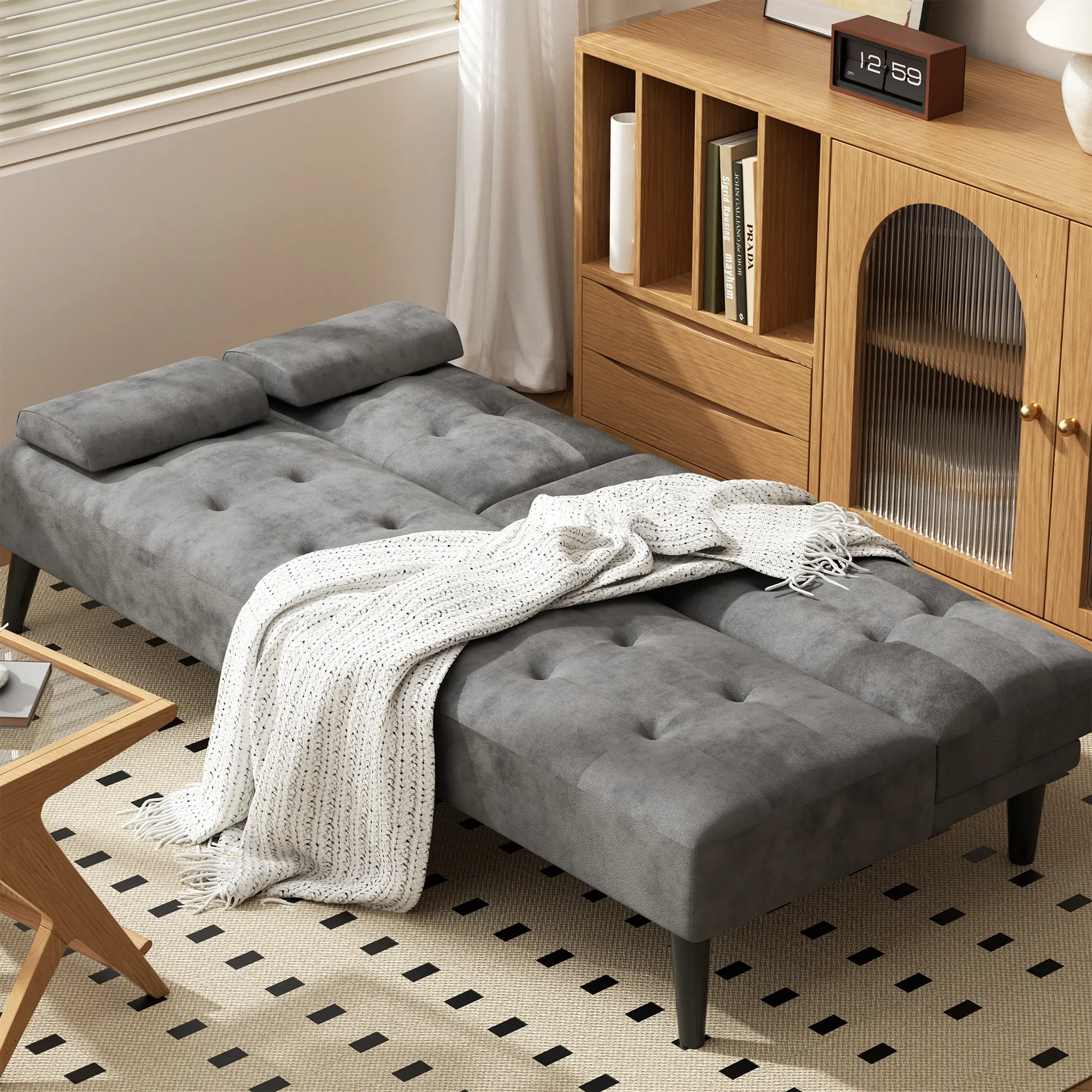 Elevate your living space with this 64'' convertible couch bed, designed for comfort and style. This modern futon recliner sleeper is perfect for the living room, office, or apartment, offering a cozy and functional seating option.