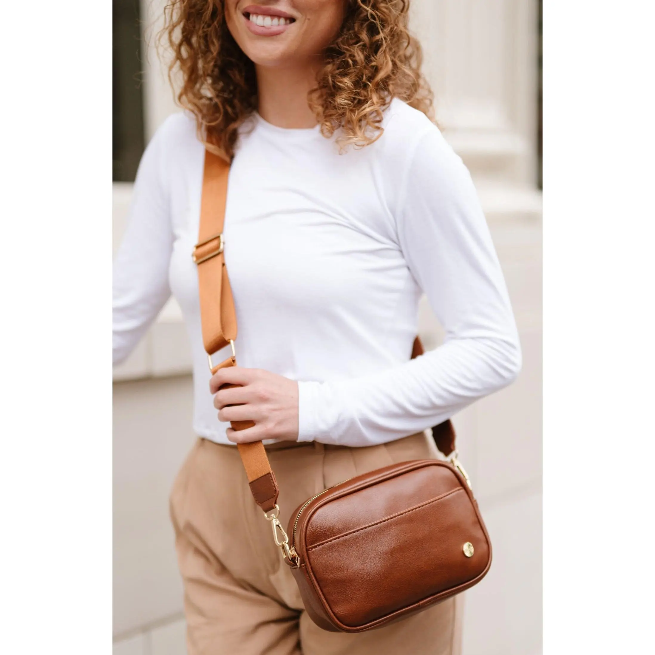 Purchased this purse in russet brown for a friend with the bookish stap and they go perfectly together! The size is perfect, the color is a pretty brown. I can't wait to give it to her.