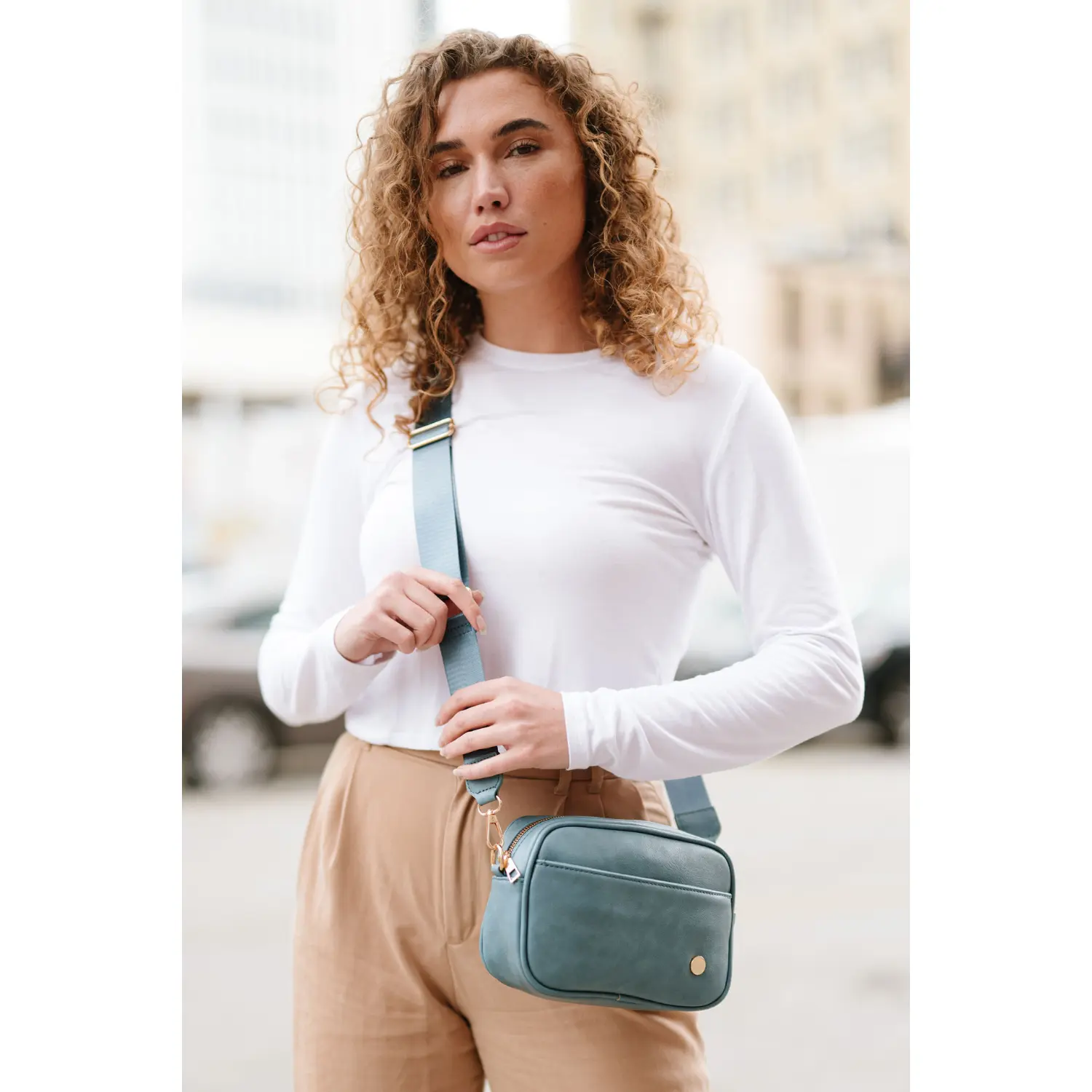 The vintage blue is stunning! I love the size of the bag and the smooth finish of the vegan leather.