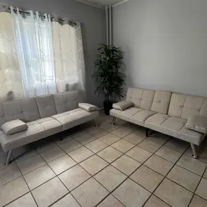QUALITY DESIGN: Durably crafted with tufted linen and 4 chrome metal legs, this convertible futon sofa fuses comfort and style that will last in your living space for years to come