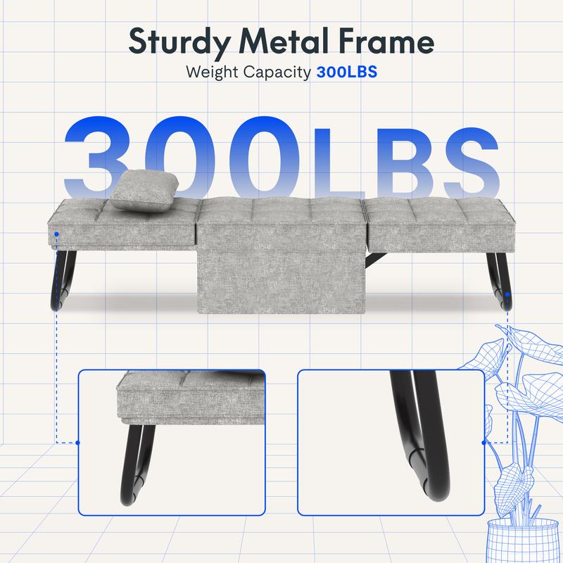 I’m so happy with all three forms of this sofa and it’s sturdy. Converting between forms were super easy. I like that the side fabric are lined with a magnetic edge so it stays nice and flat in its ottoman form. required no assembly!! Perfect.
